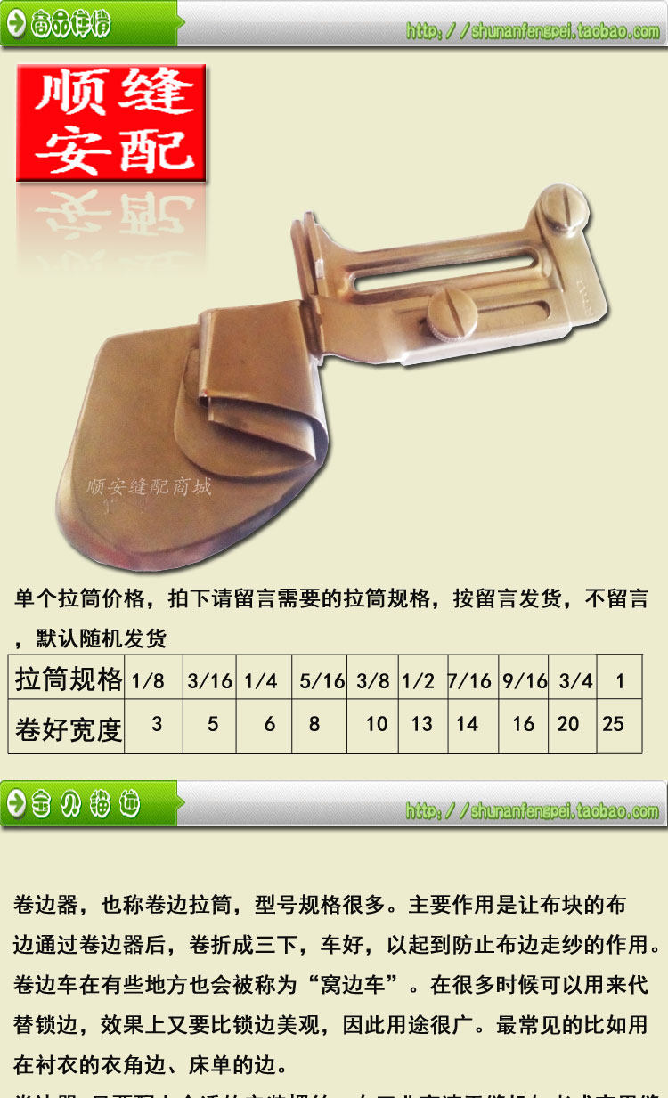 缝纫机卷边拉筒 平车拉脚筒 龙头\光变卷边器 光边折边器 包边筒