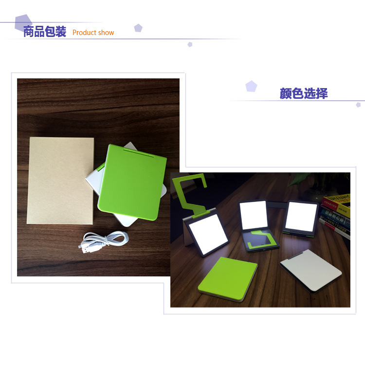 轻便的超薄折叠LED小夜灯,采用LED灯光面板,小巧轻便,打开上前盖,可轻易的打开挂钩,随处悬挂,不易脱落,带来全方位的悉心照明。