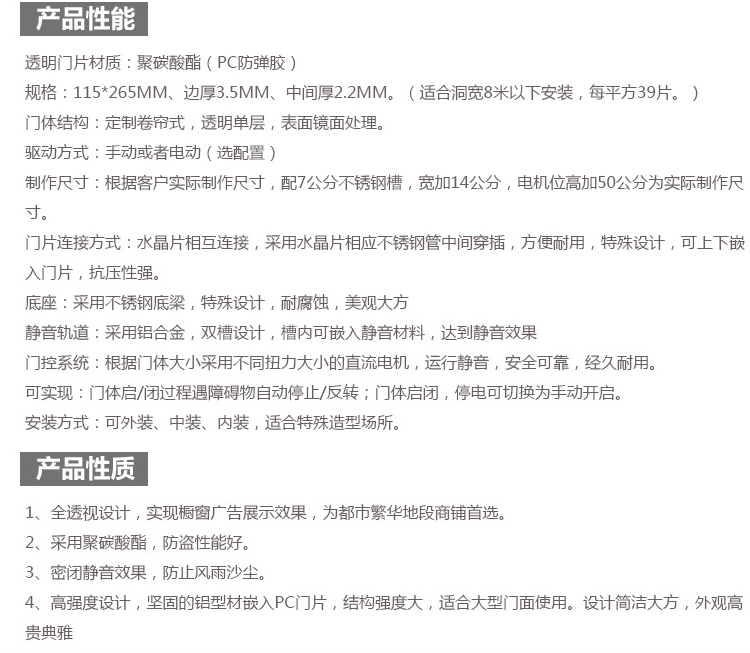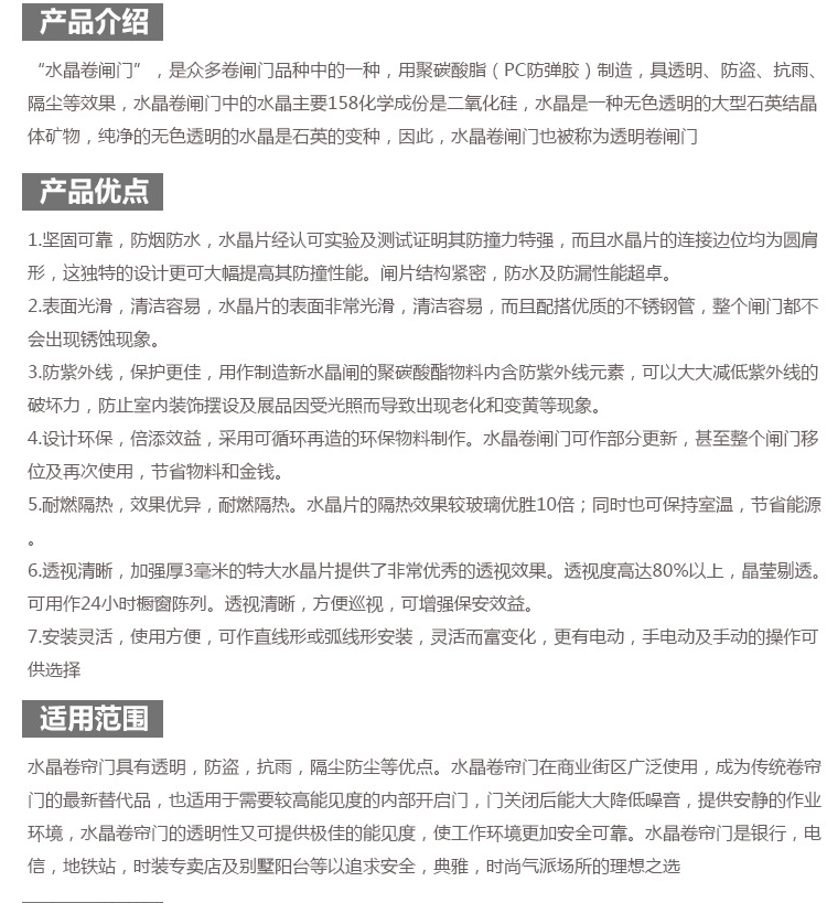 水晶卷帘门 PC水晶门 透明 生产研发11年韩国三星进口pc材料