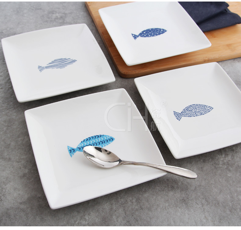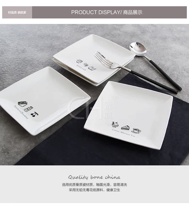 【品名】:厂家直销正方形西餐盘 陶瓷盘 创意日式陶瓷小吃碟 特 色骨瓷碟子