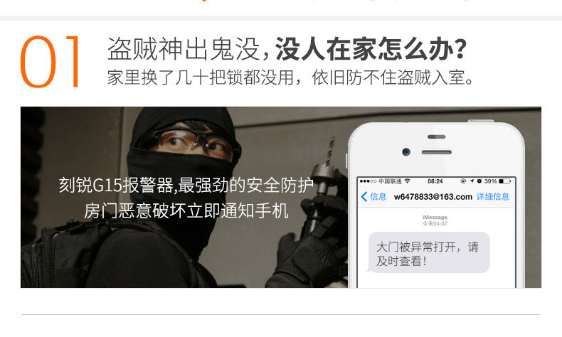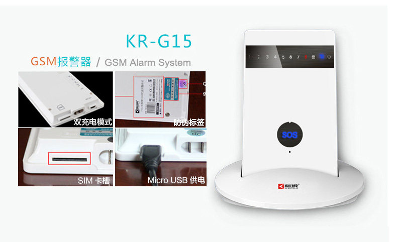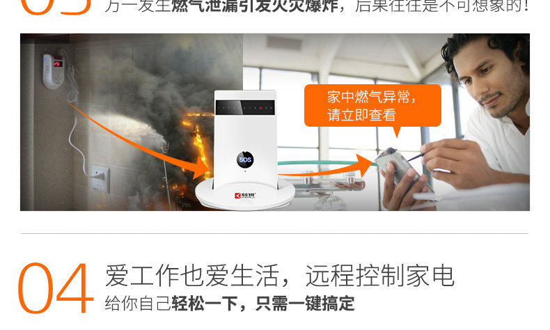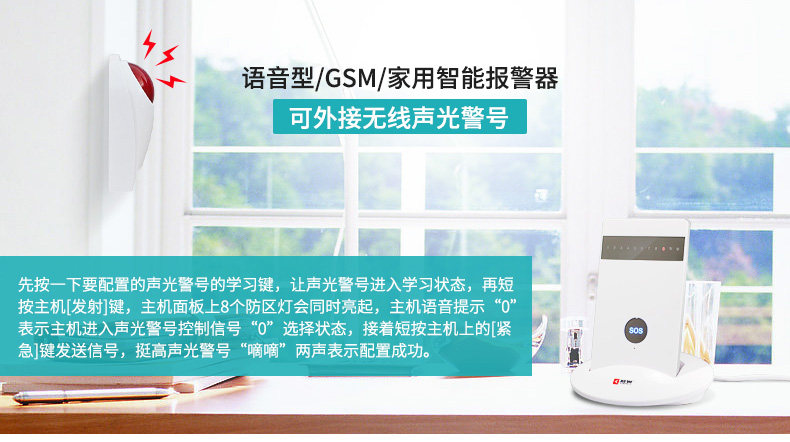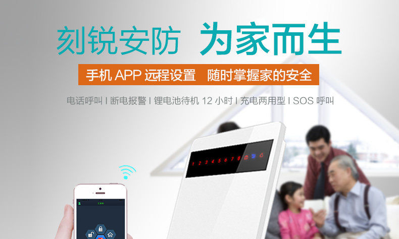 本系统是语音型GSM家用/商用防盗报警系统,结合先进的GSM数字信号处理技术,创新研制的GSM无线移动的智能报警系统。它高度集成了数字语音、中文短信息、学习式无线对码、远程家电控制、短信识别等技术。报警时自动语音或短信告知警情及事发地点,稳定、可靠、安全,以及人性化的操控。功能实用、性价比高、配置齐全、操作简单。面板上的8个LED显示报警的方位。无线连接红外,门磁,烟雾探测器,燃气探测器,紧急按钮等配件。广泛应用于家庭、工厂、学校、商铺、便利店、财务室、别墅、小区等需要防护的地方。保护财产不受侵害。