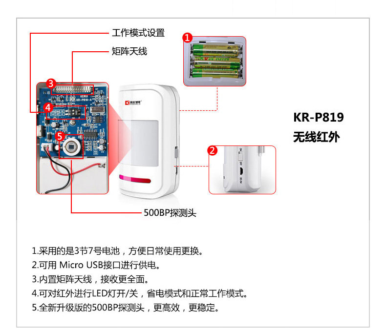 ■ 无线智能学习配件,学习对码快捷简便,主机可兼容2262及百万组编码,可学习50个遥控器及50个探测器。