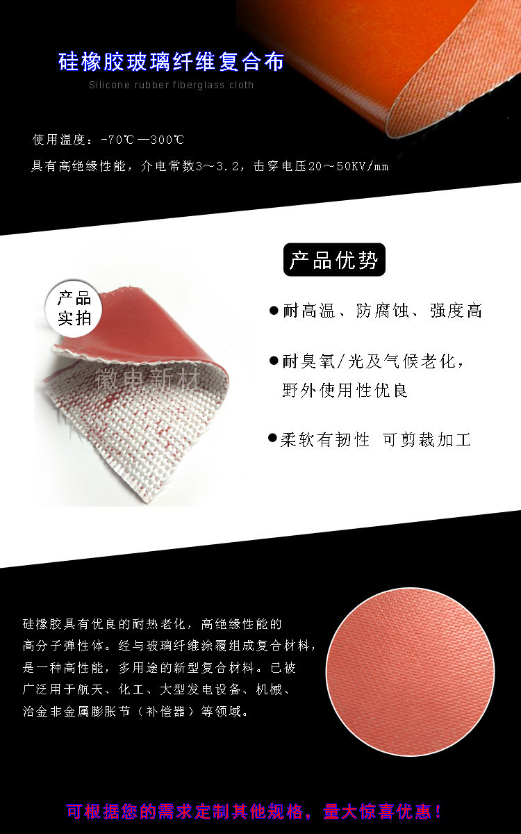 硅橡胶玻纤复合布 中文名 硅橡胶玻璃纤维布 外文名 Silicone rubber fiberglass cloth