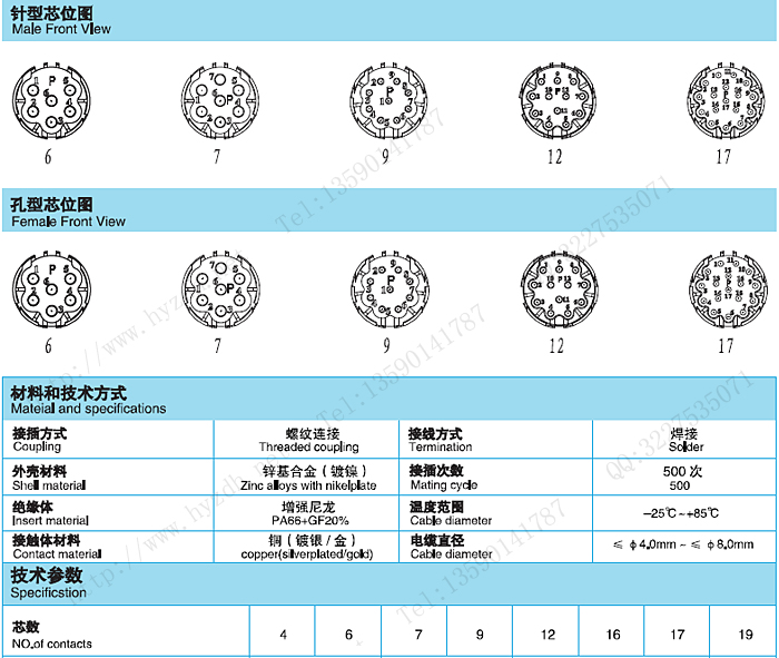 M23编码器、伺服电机插头插座,直头弯头,内螺牙,外螺牙
