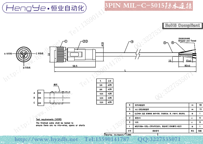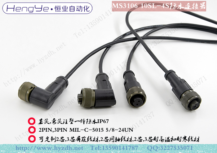 2PIN ,3PIN MIL-C-5015 IP67直头,弯头连接器
