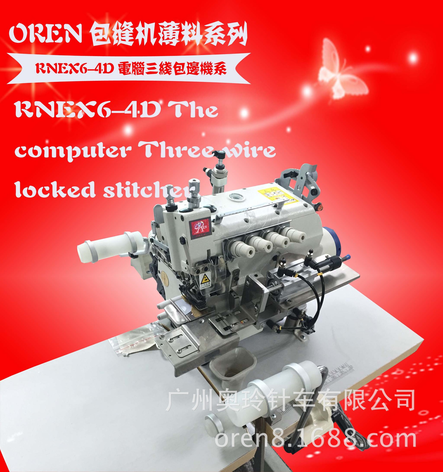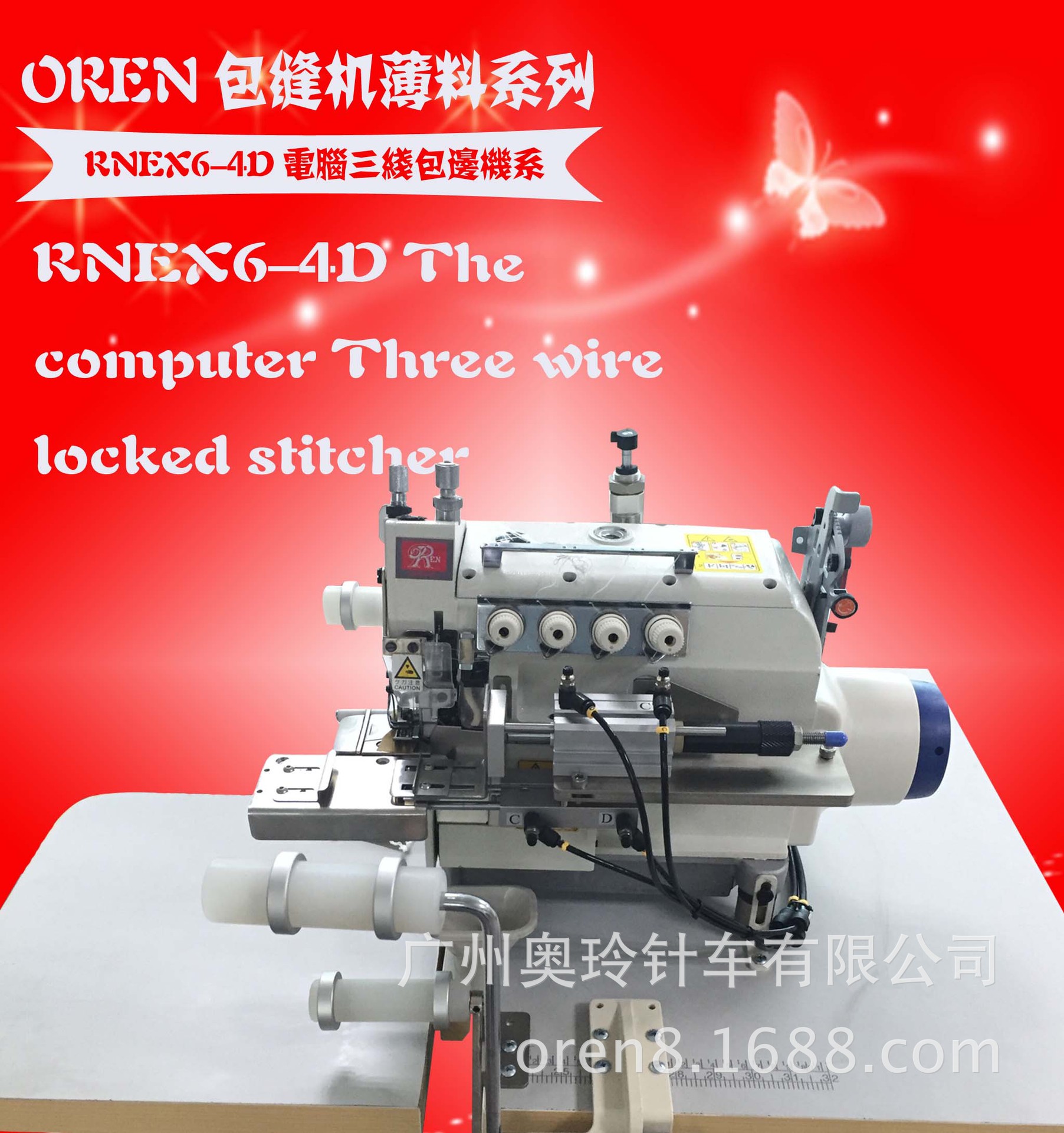 奥玲公司RNEX6-4D,集精密机械与电子技术于一身的新一代产品,广泛适用于服装T桖上领机、内衣、床上用品及薄形包装和皮革制品等各种面料的包缝作业,有多种线迹可供选择。可简单调节张力以便缝出良好的缝样,最高缝速8000转/分,实现高速缝纫,提高了生产效率。内置针杆防止漏油,同时零件采用耐磨设计,更耐磨,更持久,降低了维修率,降低成本。二重环弯针的前后量调整和上弯针的前后调整用调节器即可进行简单的调整,节省保养的所需时间。该机还具有自动挺针位等特点。它适用于针织服装、内衣、鞋、T 恤衫、丝绸、化纤的接头包缝、包边等多种缝纫作业,是一种物美价廉的高档缝纫设备;使本机性能更加稳定!