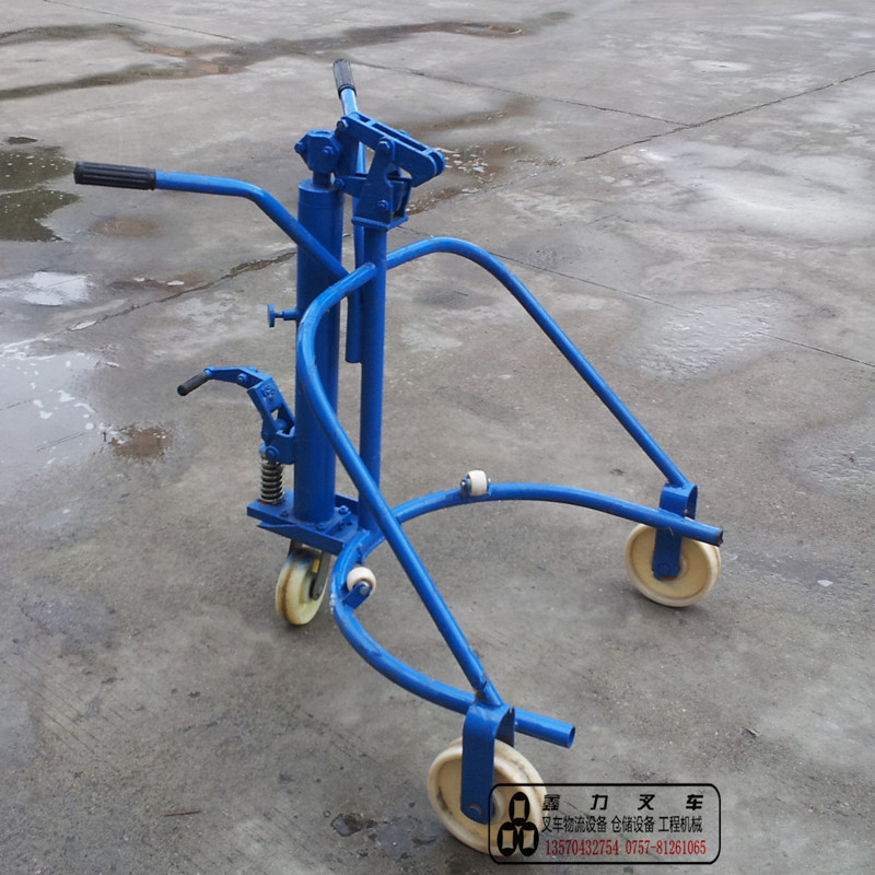 手动液压油桶搬运车-DT350通过一个特制的千斤顶轻松的起身,使用更省力。