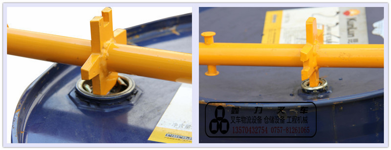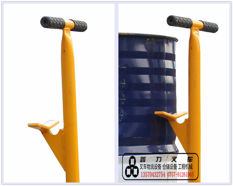 ★手把用做杠杆,支起油桶,推入小车即可移动油桶,使用省力,手柄上有大小开油桶盖专用工具。