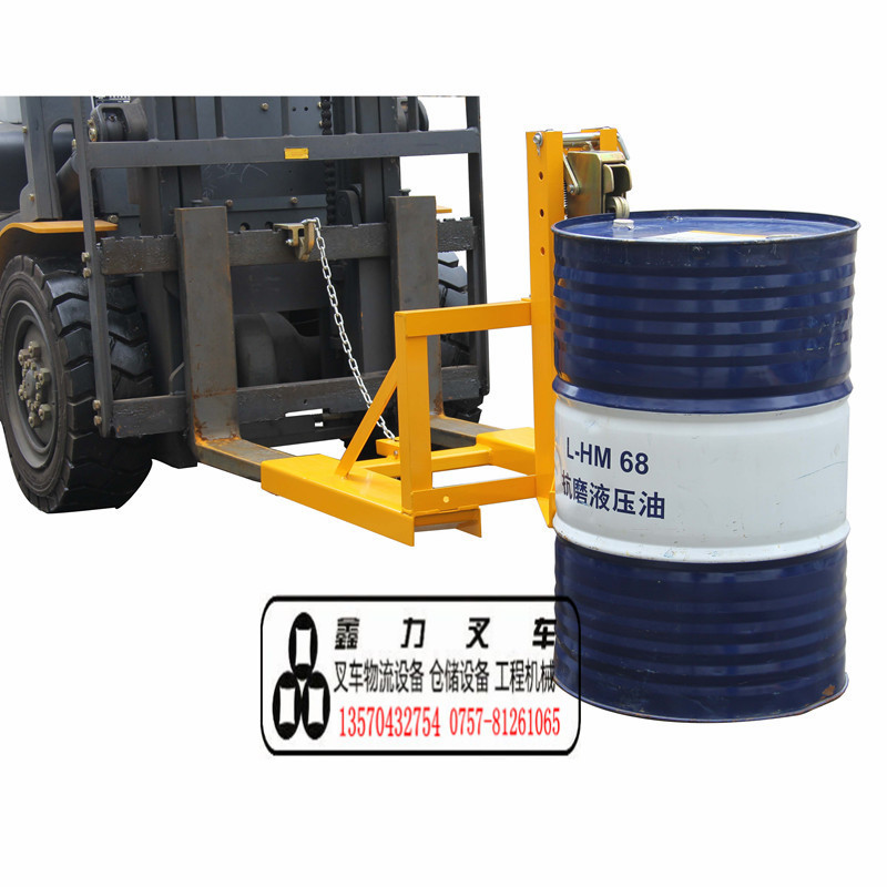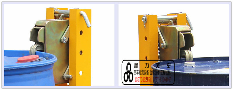 纯机械结构设计的重型双桶夹具可与叉车方便地配合,仅依靠叉车的动作,不需要其它动力,可自动一次搬运1个桶