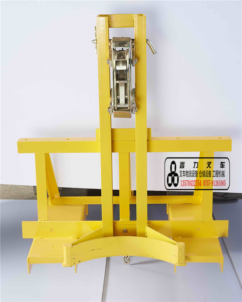 2.万向机构:采用特殊的万向节结构设计,可以上下左右自行摇摆调节,对放置不平的桶可以自动适应,可抓取倾斜达15°的圆桶。即使叉车无法对准圆桶中心时,仍可抓取偏心达20厘米的圆桶。