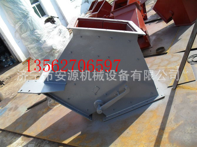 产品说明: 本阀又名叫正三通溜子,是我厂根据固体颗粒和粉状物料输送的特殊要求而开发的系列产品,本阀主要由阀体、阀轴、阀板、曲柄机构、电动推杆(电液动推杆、气动推杆或手动机构)等组成。具有体积小、重量轻、耐磨性能好、使用寿命长、阻力小,是利用电动推杆、电液动推杆、气动推杆驱动,可以快速切换物料流向。是物料输送系统中控制物料快速换向的理想设备,广泛应用于建材、冶金、矿山、轻工、粮食等行业固体颗粒和粉状物料输送。