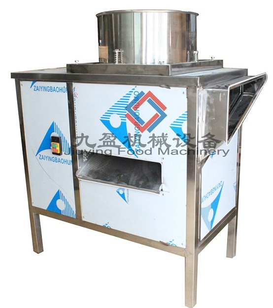 大蒜分瓣机JY-139此机采用食品级硅胶,利用上下硅胶板的间隙以及离心力将整个大蒜头挤压搓散分瓣,大蒜梗,大蒜头被内置风机从一边吹离机,可以回收;分好的大蒜瓣从机器另一侧滚落出来。