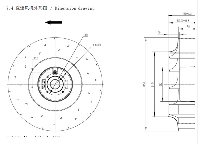 电动扫地车风机直径250mm直流后倾式离心风机环卫车风机吸尘风机,
