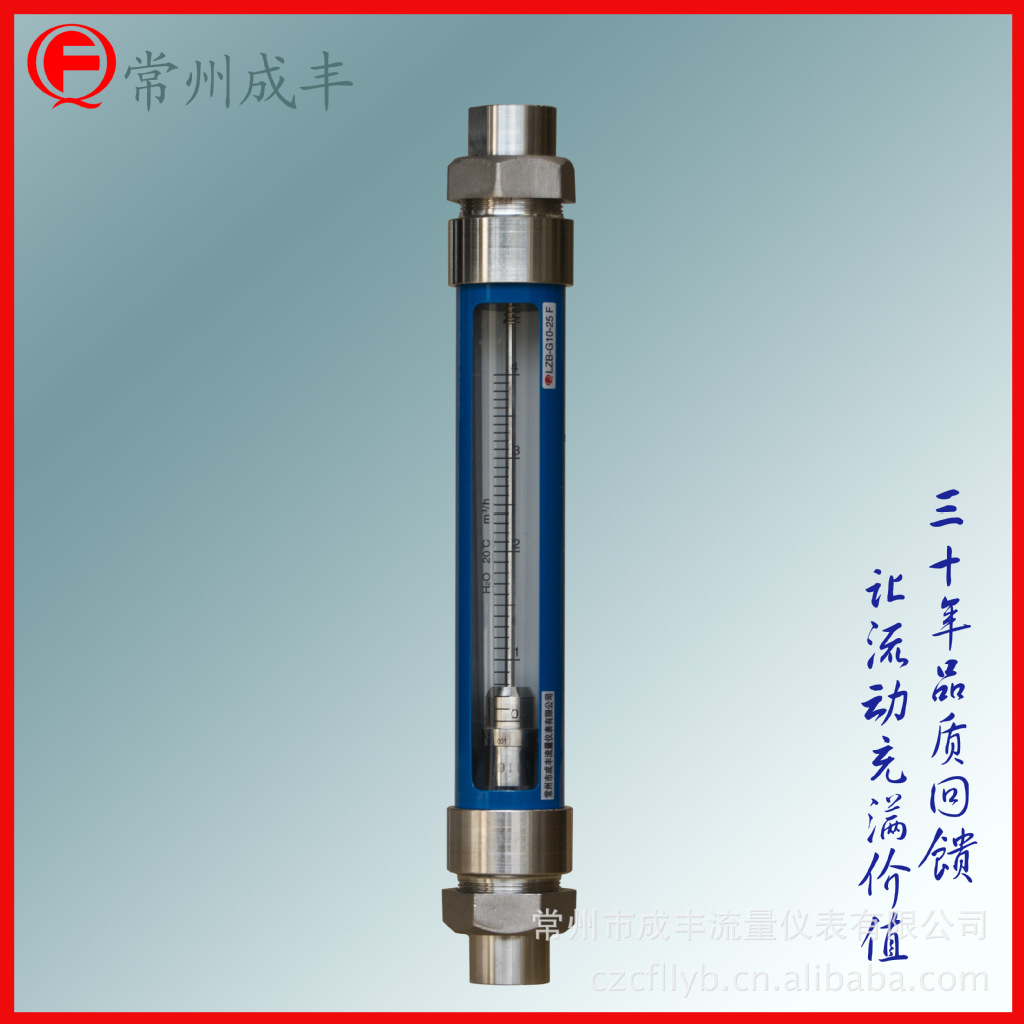 R/G/F10、20、30型玻璃转子流量计的连接有管螺纹(G10、20、30型)、软管(R10、20、30型)、法兰(F10、20、30型)三种形式。其最大工作压力和最高工作温度均高于原有相同通径的LZB/LZJ系列;可分为普通型和耐腐性两种。产品体积小,安装简单。F10、20、30型法兰可转动,与现场管道法兰孔吻合。广泛应用于化工、轻工、制药、食品、造纸、环保和计量测试、科研等部门。测量单相非脉动液体或气体的流量。