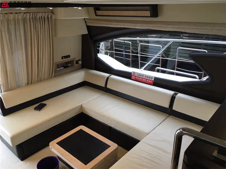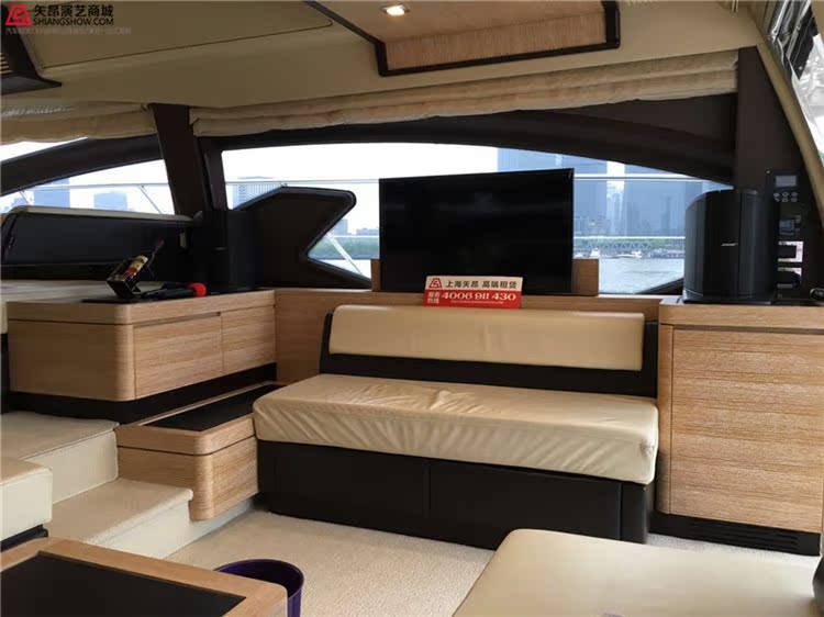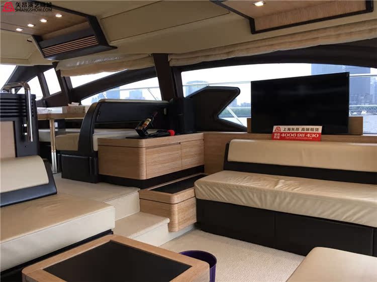 注:azimut64游艇内有1间主卧,2间次卧,2个厕所,飞桥沙发3套,室内沙发4套,厨房一个,是高端游艇party的上好选择.