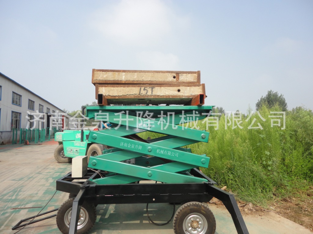 济南金泉升降机械有限公司主要生产经营:升降机,升降平台,铝合金升降机,登车桥,移动式升降机,剪叉式升降机,升降货梯,车载式升降机,自行式升降机,固定式升降机,导轨式升降机,曲臂式升降机,套缸式升降机等各种规格型号的液压升降设备,并可以根据客户要求订做各种不同类型特殊产品。
