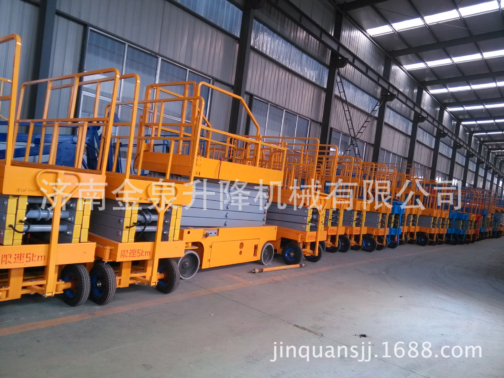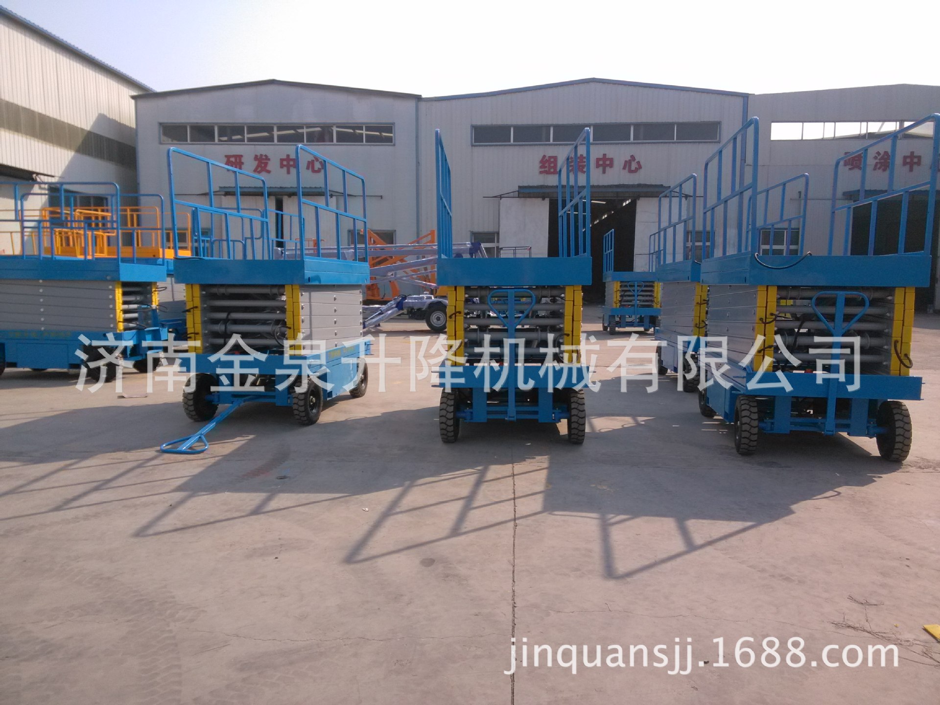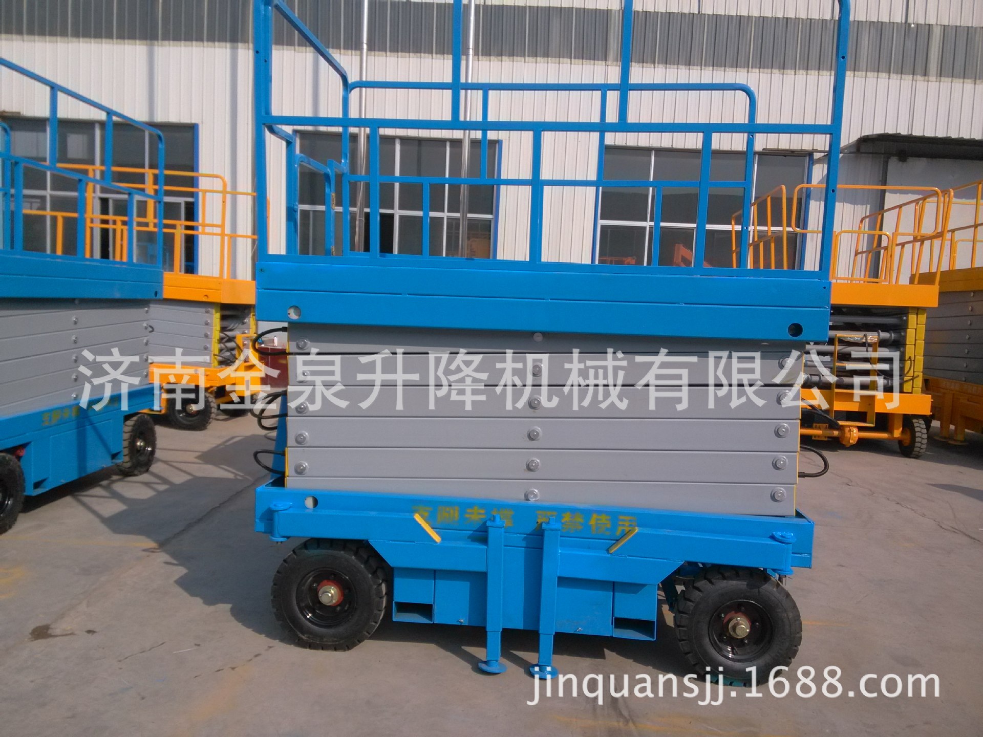 移动剪叉式升降机采用电动液压传动,升降支臂由优质矩形锰钢制作,强度高。升降机升起后,支臂呈剪刀状,又称剪叉式升降机。油缸采用斜撑方式,稳定性好。油缸为双层金属网加强型防爆油缸,能有效防止油缸突然爆裂。