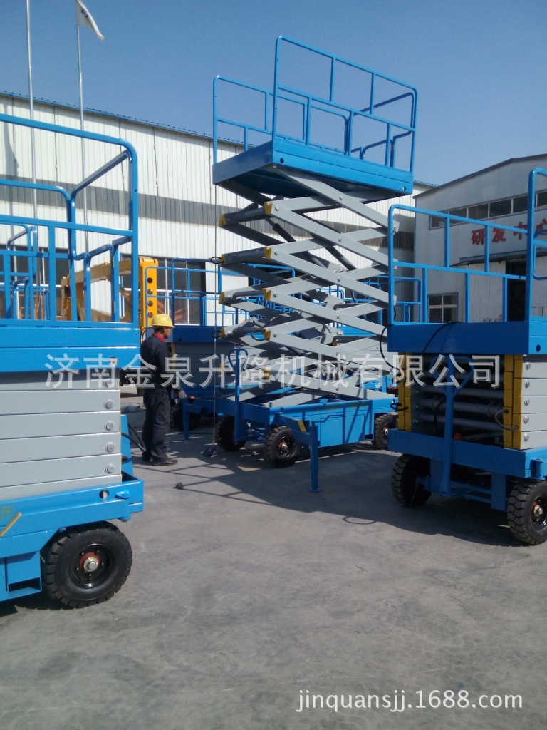 移动剪叉式升降机主要用途:工作台面和载重量比较大,升降高度高,稳定性好,广泛应用于各大工厂企业、市政园林、小区物业、建筑安装、机场码头、仓储等单位,是路灯维修、行车维修、高空设备安装维修、厂房顶部照明安装维修、高空管道安装、高空建筑施工、钢结构施工、天然气管道施工、园林修剪、广告牌安装、高空保洁等高空升降作业的理想设备。