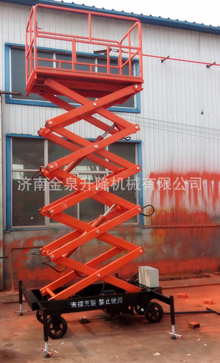 四轮移动式液压升降平台是用途广泛的高空专业设备。它的剪叉式机械结构,使升降平台起升后有较高的稳定性,宽大的作业平台和较高的承载能力,使高空作业范围更大,并适合多人同时作业。它使高空作业效率更高,安全更保障。