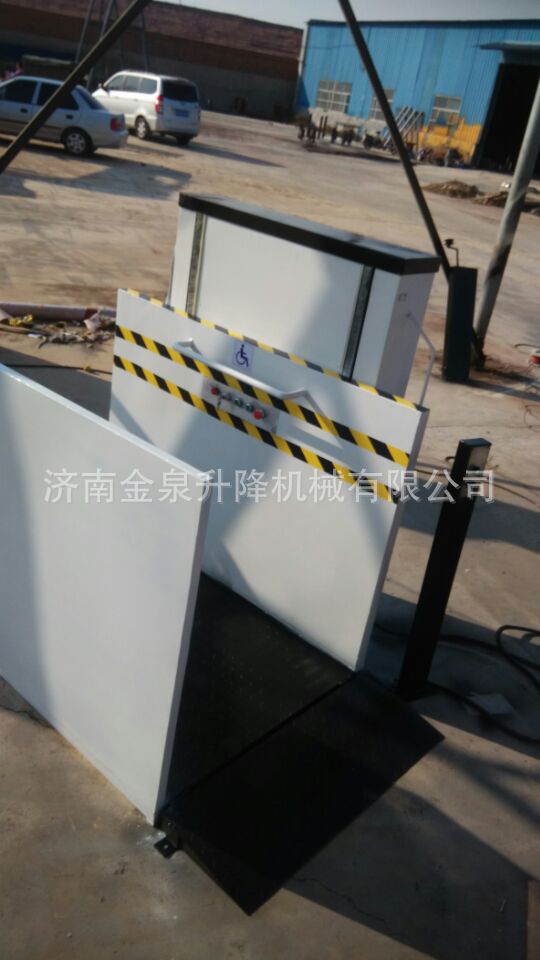 我公司生产的残疾人升降机采用液压,升降安全,外部采用不锈钢台面和护栏,并配有风琴罩,外形小巧美观,设备直接安装于基坑或路面,平台与路面齐平,不阻碍周边环境。是提高生活质量,提升生活品质的佳品。
