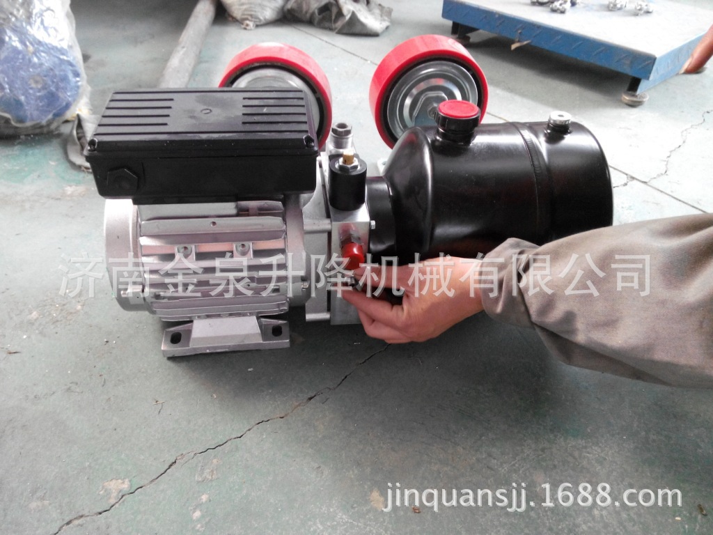 特注:升降机如果出现升上去降不下来,可把升降机的泵站打开后,把电磁阀下面泄油阀的螺母拧松后,然后用扳手逆时针轻轻拧螺杆,升降机就后降下来!