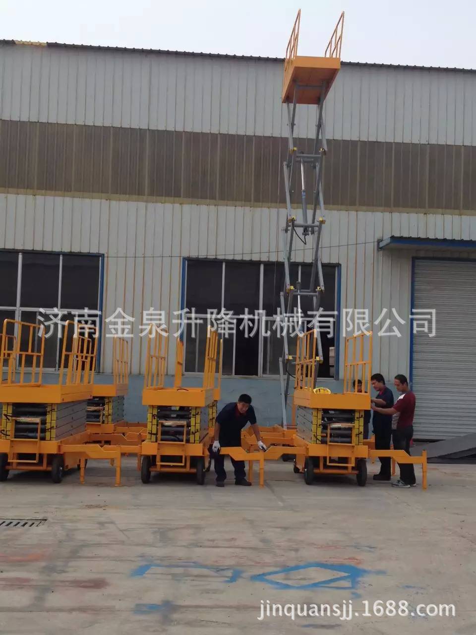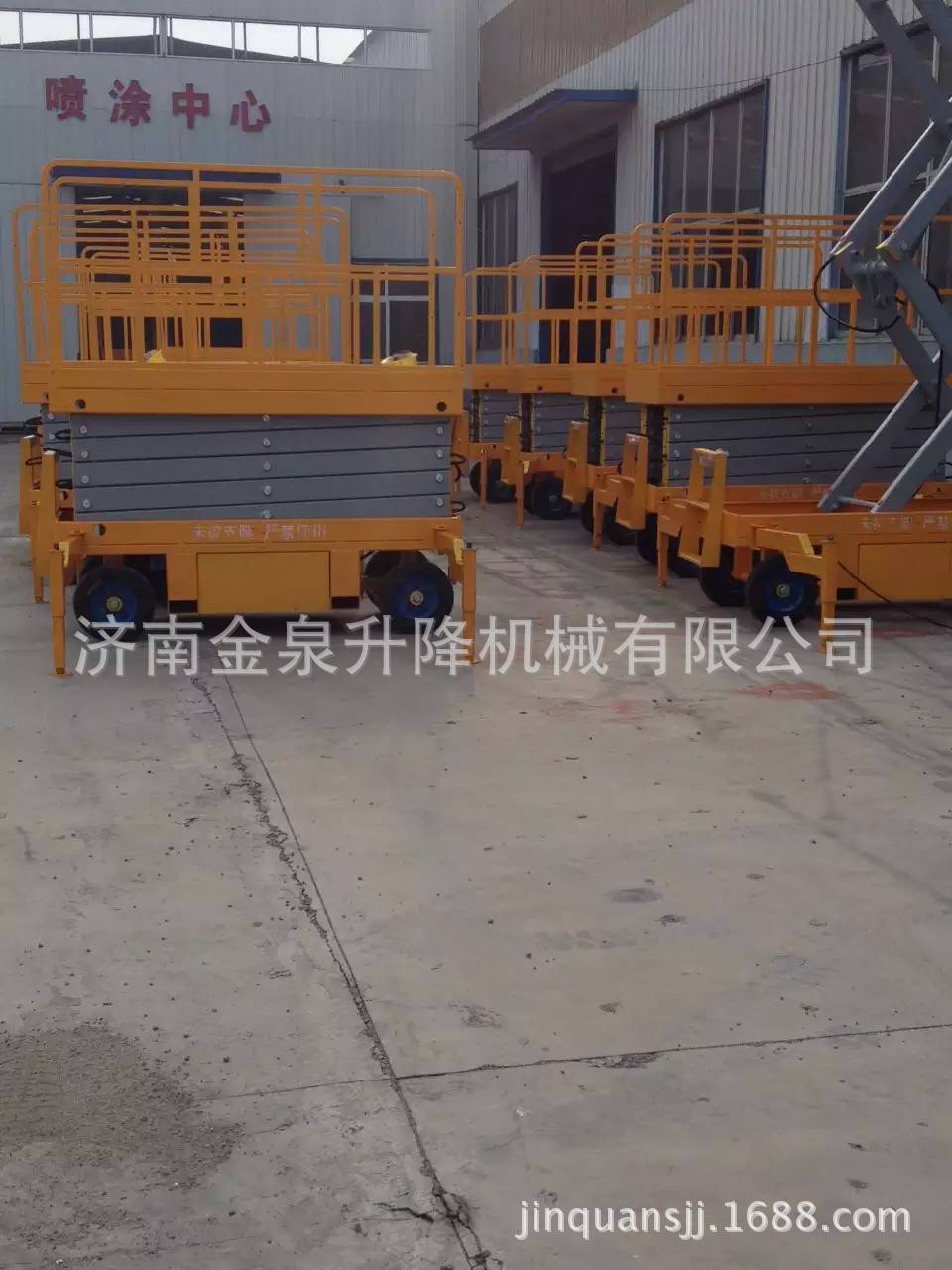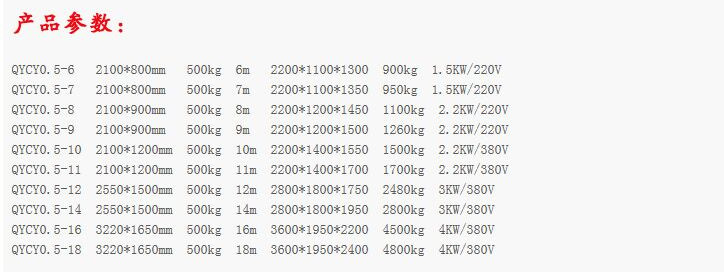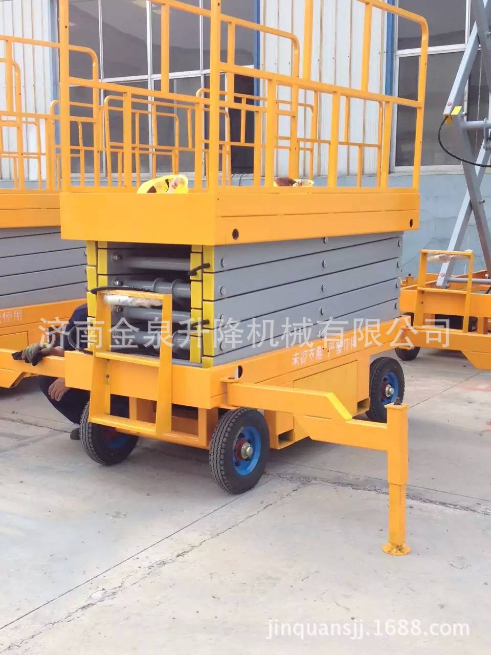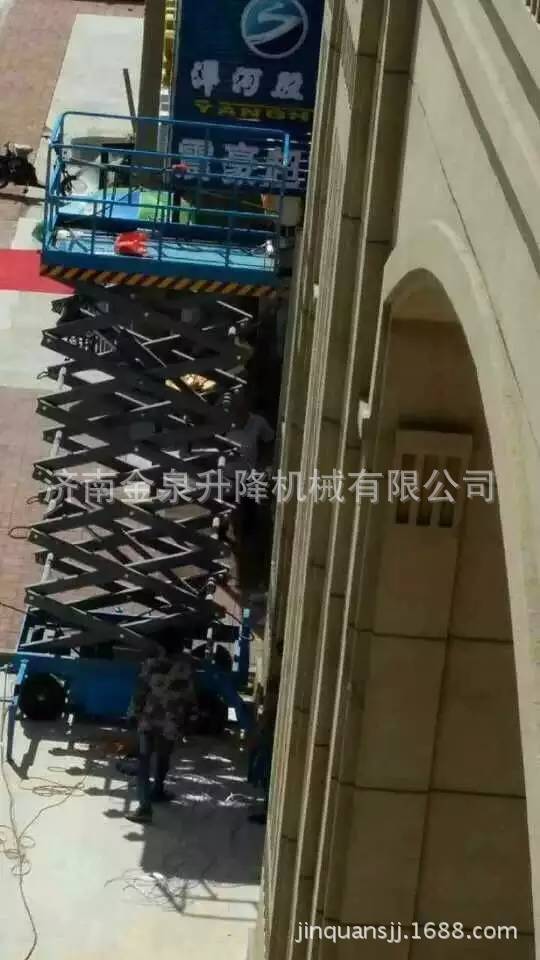 移动剪叉升降机是一种多功能起重装卸机械设备。液压升降平台分为:四轮移动式升降平台、二轮牵引式升降平台、汽车改装式升降平台、手推式升降平台、手摇式升降平台、交直流两用升降平台、电瓶车载式升降平台、 起升高度从1米至30米不等。还可根据用户要求定做特殊规格的升降平台。应用于工厂、自动仓库、停车场、市政、码头、建筑、装修、物流、电力、交通,石油、化工、酒店、体育馆、工矿、企业等的高空作业及维修。升降平台升降系统,是靠液压驱动,故被称作液压升降平台。 液压升降平台适用于汽车、集装箱、模具制造,木材加工,化工灌装等各类工业企业及生产流水线,可配装各类台面形式(如滚珠、滚筒、转盘、转向、倾翻、伸缩),配合各种控制方式(分动、联动、防爆),具有升降平稳准确、频繁启动、载重量大等特点,有效解决工业企业中各类升降作业难点,使生产作业轻松自如。二 操作规程:1、 工作前要认真检查升降平台各部件,重点检查螺丝连接是否可靠, 液压管路元件有无泄漏,电线接点有无松脱、破损等情况。2、 升降台升降前,支放好四角支腿,四个支腿应牢固的支撑在坚实 的地面上,将工作台面调至水平状态(目测即可)。接通电源,指示灯应亮。然后起动电机,油泵工作,在空载下升降一两次,检查各部位动作正常后再开始工作。当气温低于10℃时,应使油泵运转3—5分钟,确认油泵工作正常后方可进行。3、 作业人员进入平台后应关闭护栏门,插上插销,系上安全绳,载荷的中心(人站得位置)应尽量处于工作台面的中心位置。4、 起升下降:按“起升”按钮,启动电动机,电机旋转,液压系统工作,油缸伸出,平台起升;待升到工作所需高度时,按电机“停止”按钮,平台停止升降,即可作业,若不按“停止”钮,平台升至标定高度时(本机为8米)行程开关工作,平台停在标定高度。工作完毕,按“下降”按钮,电磁阀动作,此时油缸回油接通,平台靠自重下降。5、 液压平台使用过程中严禁超载(本机额定载荷为300公斤),在起升下降过程中平台上作业人员不得移动。6、 移动或牵引液压平台时应将支撑腿收起且平台降至最低位置,严禁作业人员在高位时移动平台。7、 当平台出现故障无法正常工作时,应及时切断电源进行维修,严禁设备带病作业,非专业人员勿拆卸液压元件及电气元件。8、请勿在地面不平稳的状态下使用本机器;请勿在平台未平稳,外伸支腿未调好,调平,着地不牢靠的情况下提升平台;9、请勿在平台上有人或升起时调整或收起外伸支腿;10、请勿在平台升起时移动机器,如需移动请先将平台缩合,松开支腿;11、请勿使用本机提升货物或设备,本机仅限于载人和工具作业;12、请勿在强风状态下进行室外作业;13、请勿在作业时向外用力推拉物体;14、请勿在平台护栏上坐卧、站立或攀援;15、起升平台下严禁站人或堆放杂物;16、请勿以本机器作为电焊中线接地之用;17、请勿在一切可以预见危险状况下使用本机。18、桅柱式系列升降机,额定载重量包括人与携带物品,切勿超载;19、使用前必须调好水平,否则不能使用;20、升降机在工作中不准移动或调整底座;21、不允许爬登、站立在载人平台的护栏上作业;22、应使用在坚实平坦的地面上,决不允许在临时搭起的台架、卡车(载重车、货车、无盖汽车)、床铺或者伸出的平面上使用;23、升降机工作时,不允许有任何负载碰靠侧面以防出现事故;24、 支脚下如地面松软,要做牢固的垫木,调整稳妥;25、升降机工作时,载人框架下不许站人;26、不能倾斜使用桅柱式升降机,紧靠高墙使用时,提升高度不得大于高墙高度;27、司机在每日工作前须先认真检查平台的电器系统、液压系统和机械系统是否正常,并将平台上下空载试行数次,检查有无故障和不正常现象,还须注意平台台面停层站准确度有无显著不正常的差距。28、司机在工作前将防护栏两端的活动门关牢锁死后鸣铃起动,严禁在防护栏活动门敞开情况下工作。在平台行驶中如遇特殊情况可使用急停开关停止平台,但在正常运行中,禁止使用急停开关停车。29、司机应负责监督平台运输的物品在台面上尽可能的分布均匀防止偏载,并禁止超载运行。平台不允许载人和装运易燃易爆等危险物品和禁止在升高时人员攀爬以及人为摇晃。30、司机在平台工作中严禁离开岗位和对平台进行揩拭、润滑或者修理工作。当工作完毕后,司机应切断电源,锁上控制盘方可离开岗位,并填写好交接班记录。31、平台发生故障或者有失正常工作时,应立即通知检修人员修理,如发现有危险性或可能造成人身机械事故时,应立即停用,切断机房总电源,报告管理部门,待修复并进行详细检查后才可使用。
