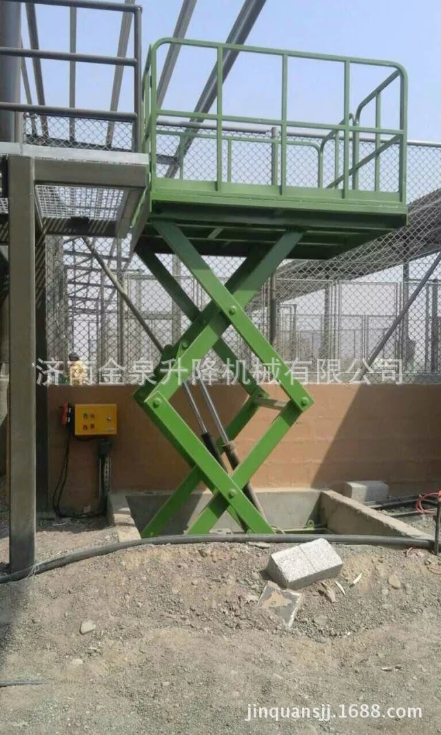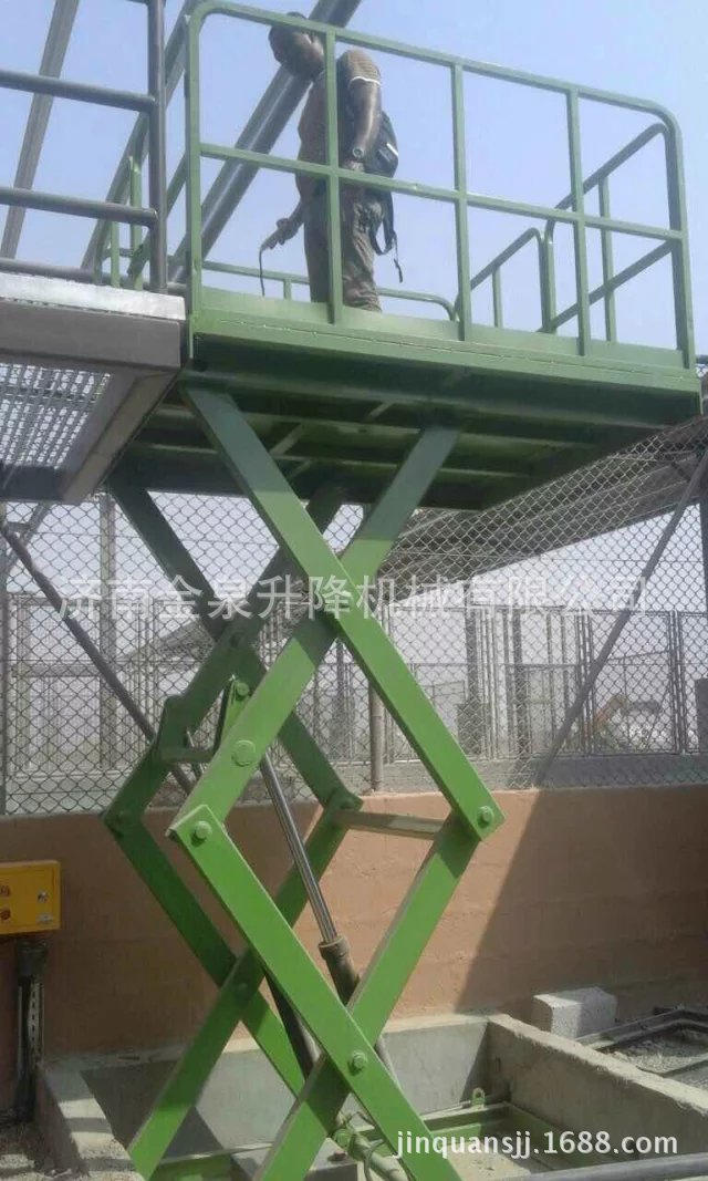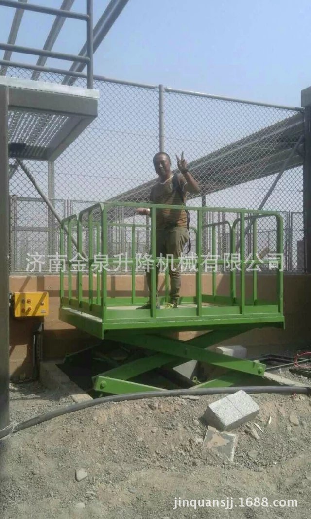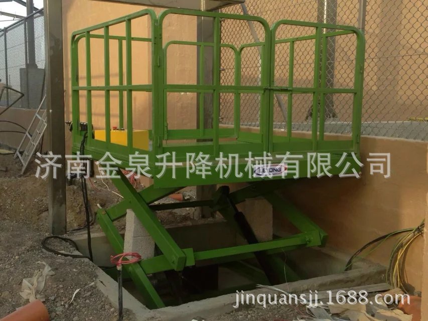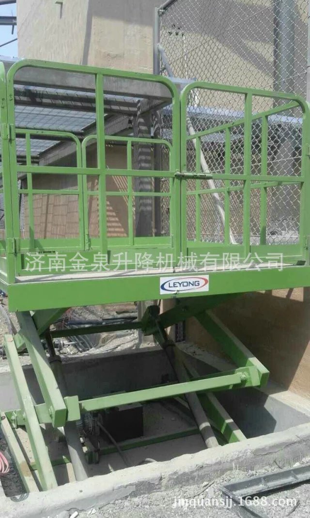 一、SJG固定式升降平台、液压升降机的概述:SJG固定式液压升降平台、固定式升降机,可载重0.5-10吨,举高1-10米,可设为地坑式、非地坑式。固定式升降机是用于建筑物层高间运送货物的,专用液压升降机。产品主要用各种工作层间货物上下运送;立体车库和地下车库层高间汽车举升等。产品液压系统设置防坠、超载安全保护装置,各楼层和升降台工作台面均可设置操作按钮,实现多点控制。产品结构坚固,承载量大,升降平稳,安装维护简单方便,是经济实用的低楼层间替代电梯的理想货物输送设备。根据升降机的安装环境和使用要求,选择不同的可选配置,可取得更好的使用效果。二、SJG固定式升降平台、液压升降机参数表:三、SJG固定式升降平台、液压升降机的功能: SJG固定式升降平台、液压升降机适用范围广的货物举升设备主要用于生产流水线高度差之间货物运送;物料上线、下线;工件装配时调节工件高度;高处给料机送料;大型设备装配时部件举升;大型机床上料、下料;仓储装卸场所与叉车等搬运车辆配套进行货物快速装卸等。 根据使用要求,可配置附属装置,进行任意组合,如固定式升降平台的安全防护装置;电器控制方式;工作平台形式;动力形式等。各种配置的正确选择,可最大限度地发挥升降平台的功能,取得最佳的使用效果。 SJG固定式升降平台可选配置有人工液压动力、方便与周边设施搭接的活动翻板、滚动或机动辊道、防止轧脚的安全触条、风琴式安全防护罩、人动或机动旋转工作台、液动翻转工作台、防止升降平台下落的安全支撑杆、不锈钢安全护网、液压升降驱动系统、万向滚珠台面。质量保证:售出产品在交货后30天内如下情况负责包退、包换,所发生的费用由济南金泉承担。1.客户收到的产品与订货产品型号不符。2.客户收到的产品不符合订货要求中的规定,造成不能正常使用。3.产品存在不能正常使用和无法修复的缺陷。4.在交货的运输过程中造成产品缺损,无法修复。产品保修: 自产品交货之日起壹年内,正常使用情况下,由于产品质量原因(非使用不当等人为原因)造成的设备故障,免费保修,并能在24-72小时到达目的地。济南金泉的追求: 以质取信、以诚为本,逐步成为国内电动产品新型仓储物流搬运设备制造企业。真诚的欢迎海内外朋友来我公司光临指导,洽谈合作、共创辉煌!销售热线:0531-84227930手机:15662757281QQ:2363749467 邮箱:2363749467@公司网址:浙江升降机|福建升降机|甘肃升降机升降车|导轨式升降机|导轨式升降平台|残疾人升降机|液压升降机|液压升降平台|升降机