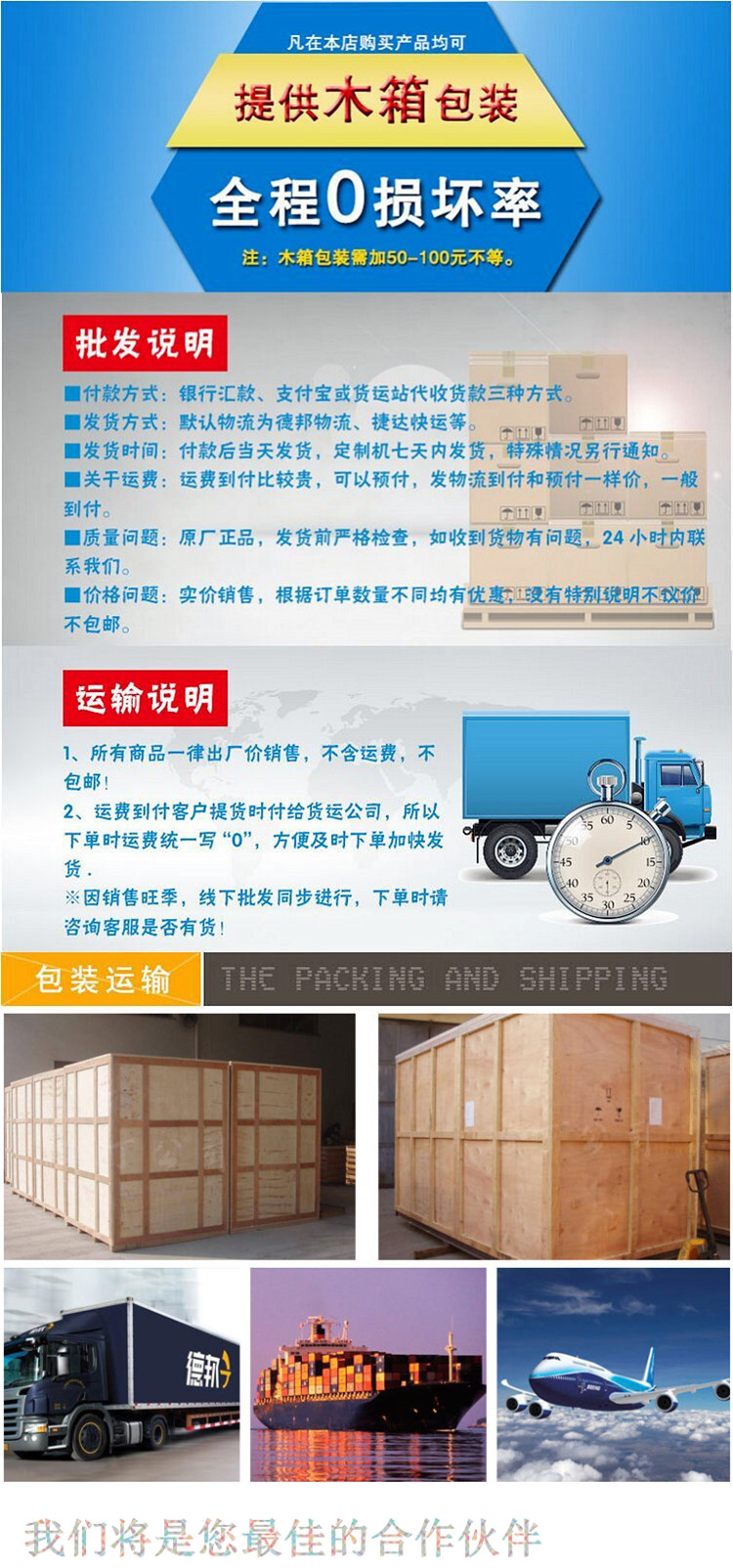 有的客户担心交了全款收不到货,公司担心恶意定单的产生(货到了不提货),所以为公平起见,客户先从支付宝付定金,设备通过物流发出.余款由物流公司代收.如因客户个人原因不签收或者不要设备。此定金视为来回物流费用。此定金不支持退款,谢谢亲的理解!