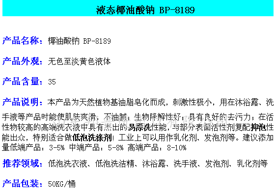 椰油酸钠 液态 低泡清洗剂 BP-8189 易漂洗 乳化剂 发泡剂