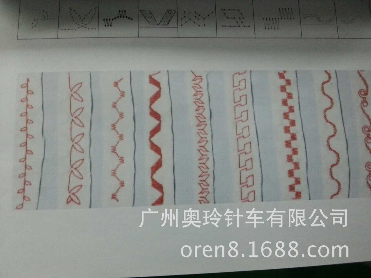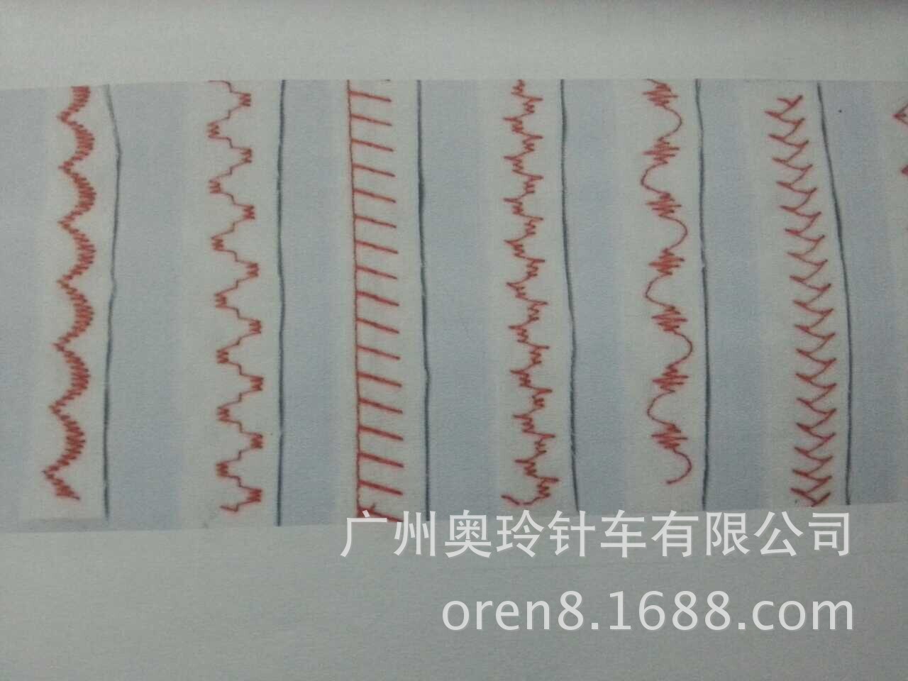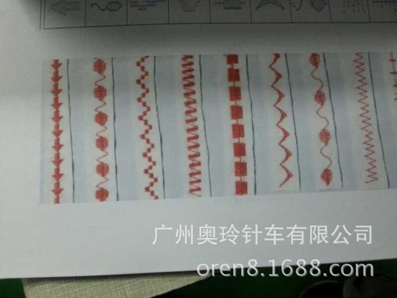 1.8种缐迹类型各带14种变换的花样应用于各种不同的缝制(直缐缝,曲折缝,双针曲折缝,三针曲折缝)