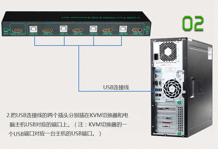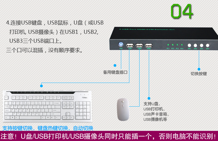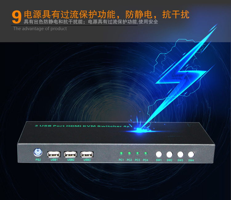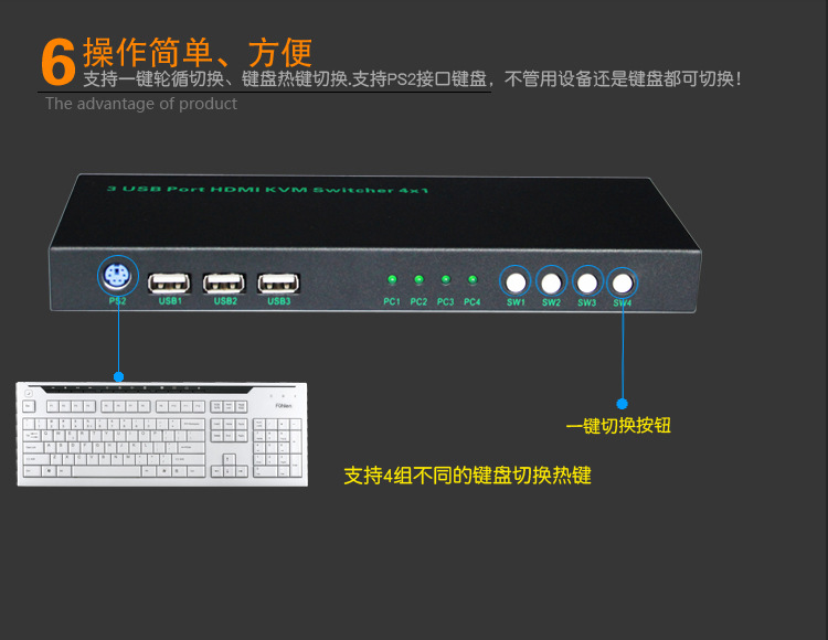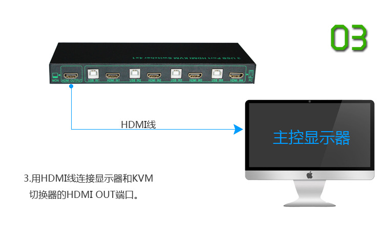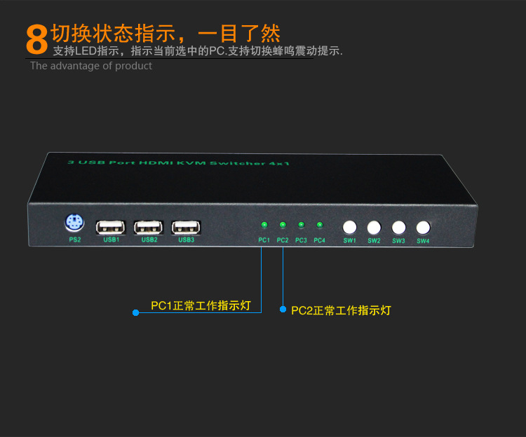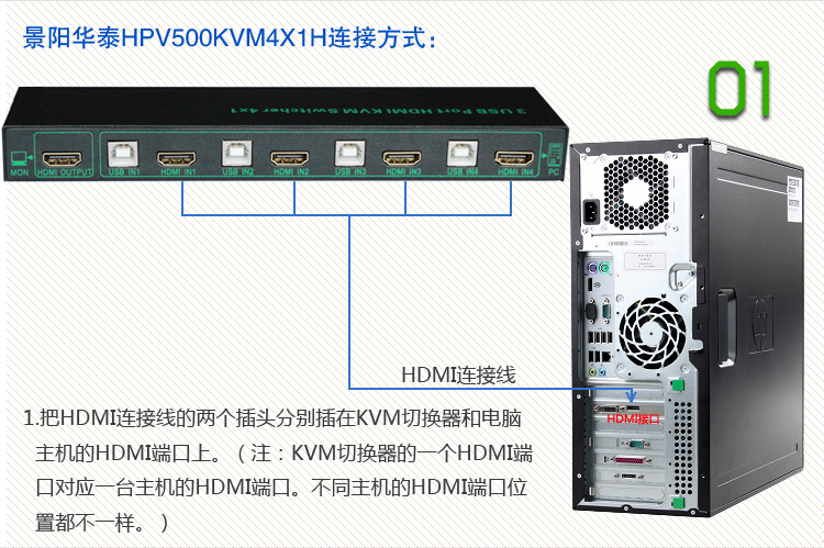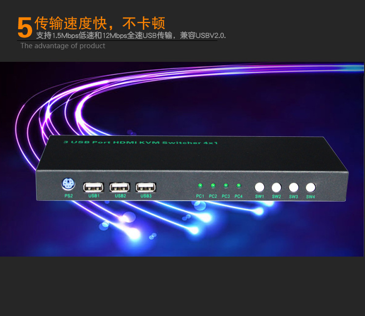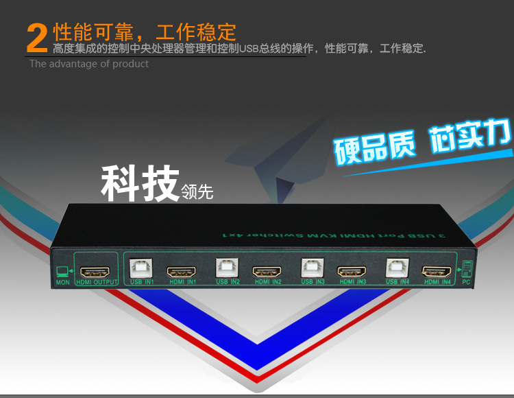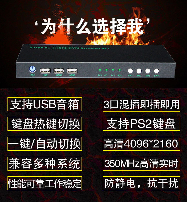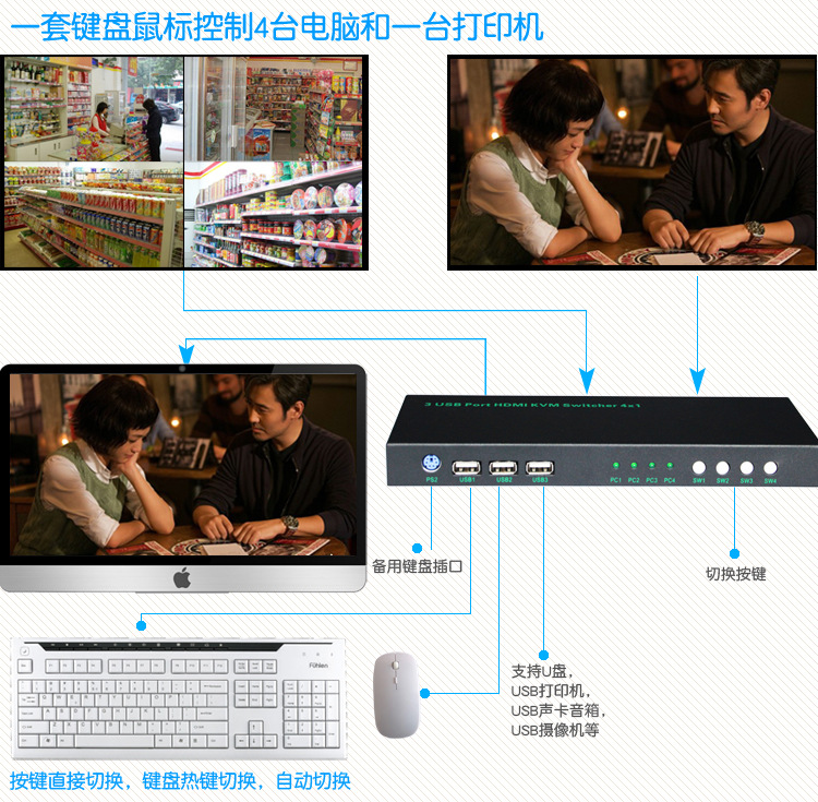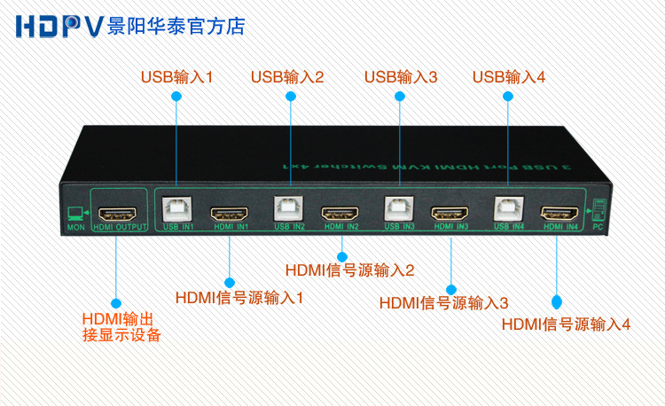 景阳华泰KVM切换器4口USB+HDMI四进一出多电脑控制器键盘鼠标4K