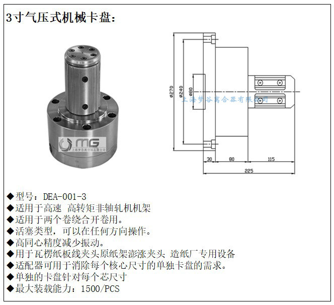 上海梦谷离合器是一家生产并销售各种旋转型、顶推式、气压式等等多种机械夹头,也可根据客户需要定制加工。