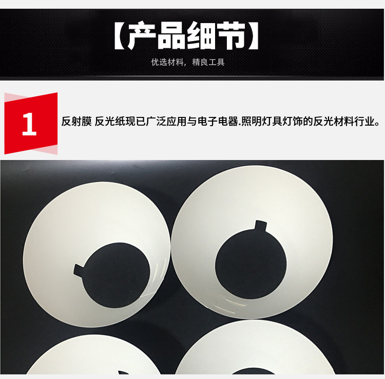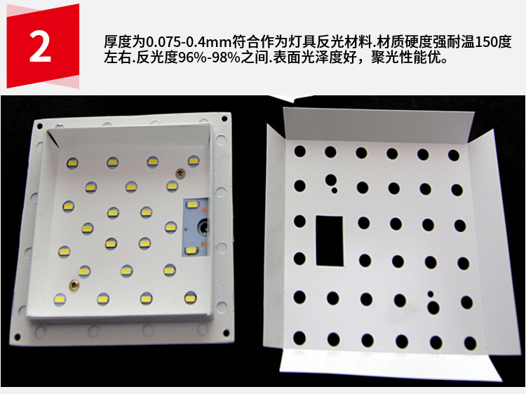 反光片应用:应急灯、台灯、日光灯、学习灯、LED灯、护眼灯、吸顶灯、荧光灯、鱼缸照明灯等各类节能照明灯具以及工艺品,装饰品,玩具,五金,电器,电子产品等.
