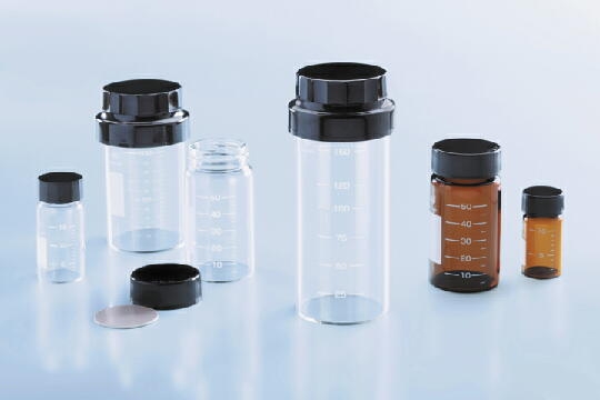 | ※標準セット 瓶(ホウケイ酸ガラス)・キャップ(フェノール樹脂)・パッキング(ダブルテフロンorテフロン/シリコン)のいずれも、 オートクレーブは当然のこと、乾熱滅菌にも対応。 |