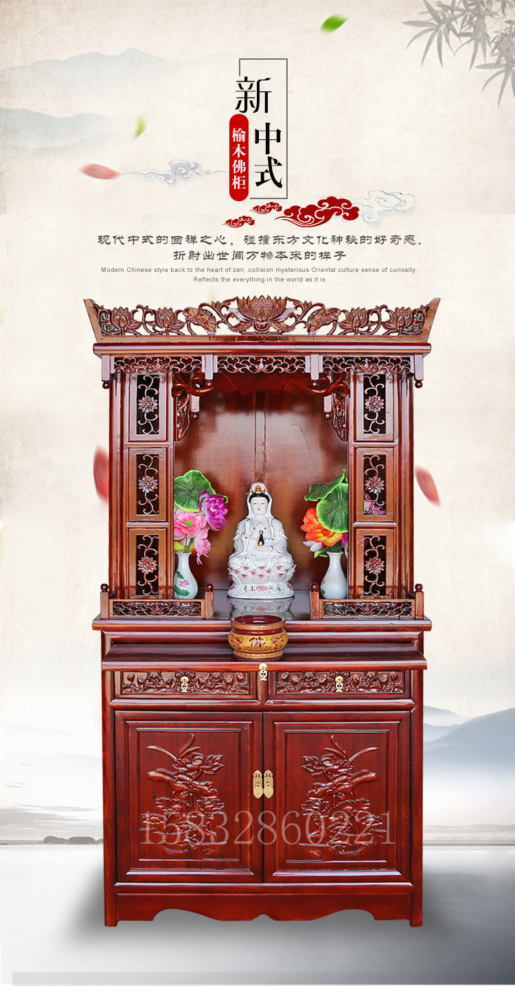 此款佛柜是我们厂家畅销的款式,老榆木,榫卯结构,环保漆!各种款式,镂空,