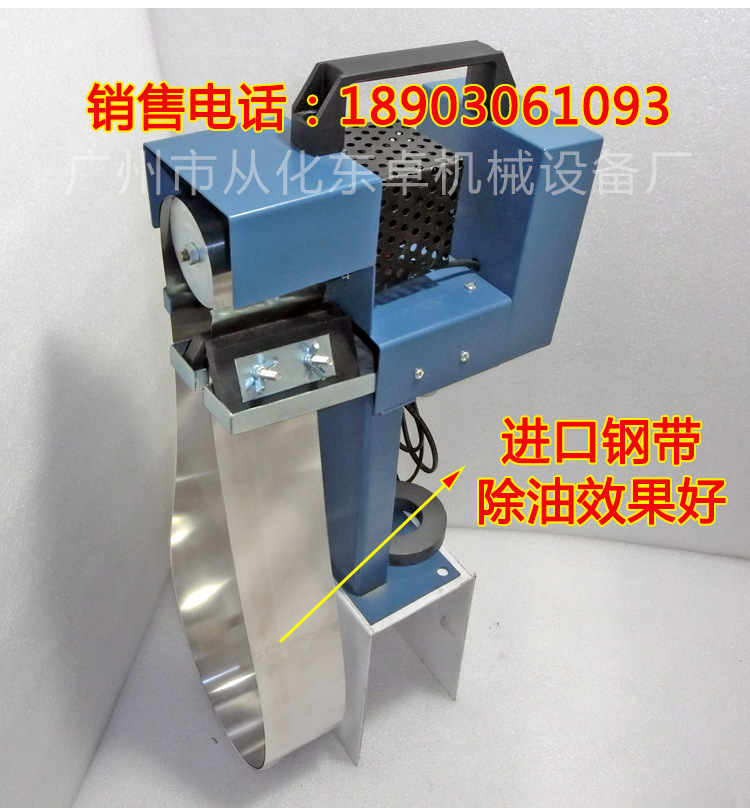撇油机又称为刮油机、油水分离机、浮油捞除机、除油机,是一种液面浮油去除机。其以具有磁性吸力的动力轮吸附悬挂的钢带于水面上、下循环运转,使浮油附着于钢带表面,经浮油刮除装置刮除浮油流至收集桶,具有回收、清除功能的环保机械产品。