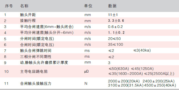 4.2 断路器装配调整后机械特性参数
