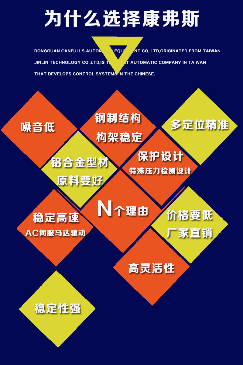 4. 根据需求机械手各轴可采用AC伺服马达驱动,使机械手运行中稳定性强、速度快、多点定位精确,为机械手与治具、周边设备配合提供有力支持。