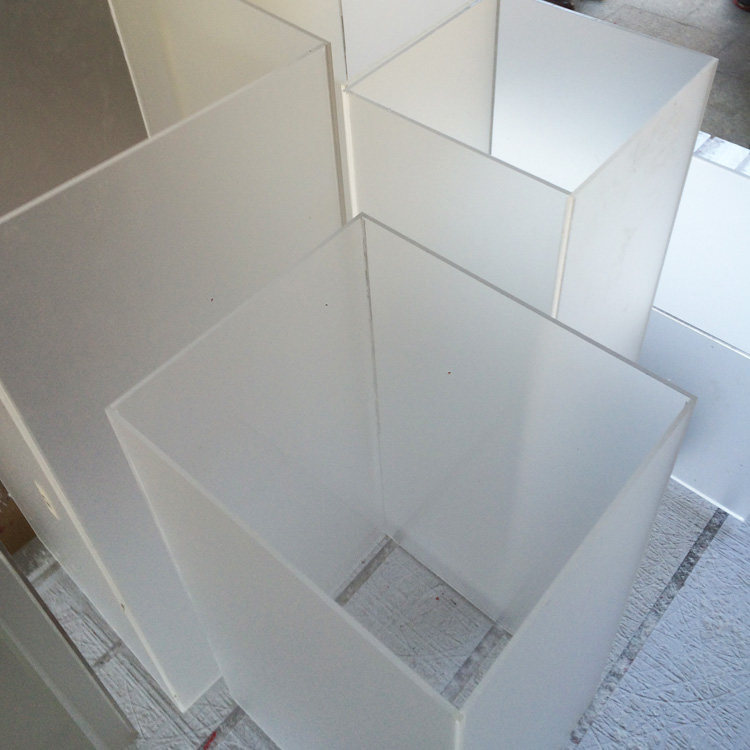 下图:五个面的亚克力磨砂防尘灯罩。大小高度都不一样,为了保险起见,罩子里面都加了亚克力三角条,坚固无比。厚度为4mm
