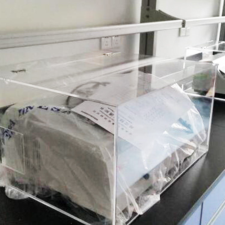 下图:客户订制的机械设备亚克力透明罩子,这个比普通较为复杂点,加上了不锈钢合页,旁边还雕了长方形的孔,电线插头能出入自如。五个面