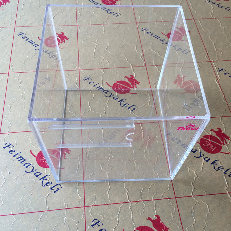 下图:这个其实是装食品或是坚果,糖果之类的亚克力盒子。因经常偷懒,做的成品没有拍图片,用这个凑下数而已。也还是可以防尘的哈,反过来,也是五个面,可以当亚克力防尘罩来使用的。