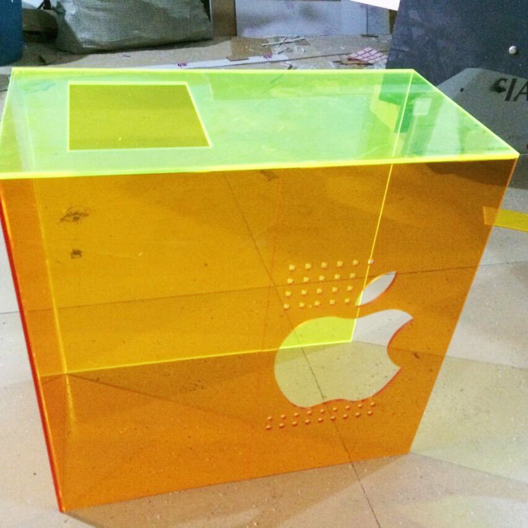 下图:电脑多色有机玻璃罩,因是自己用,只是给电脑挡灰尘用。就用剩下的余料,拼接起来的罩子。色彩还是挺绚丽的哈