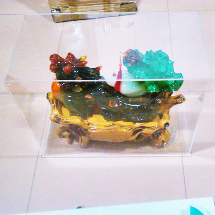 下图:带有底座的模型防尘亚克力盒子,底板5mm透明亚克力,磨斜边,抛光。