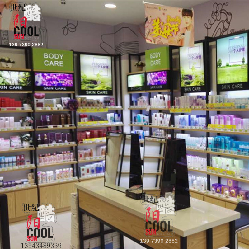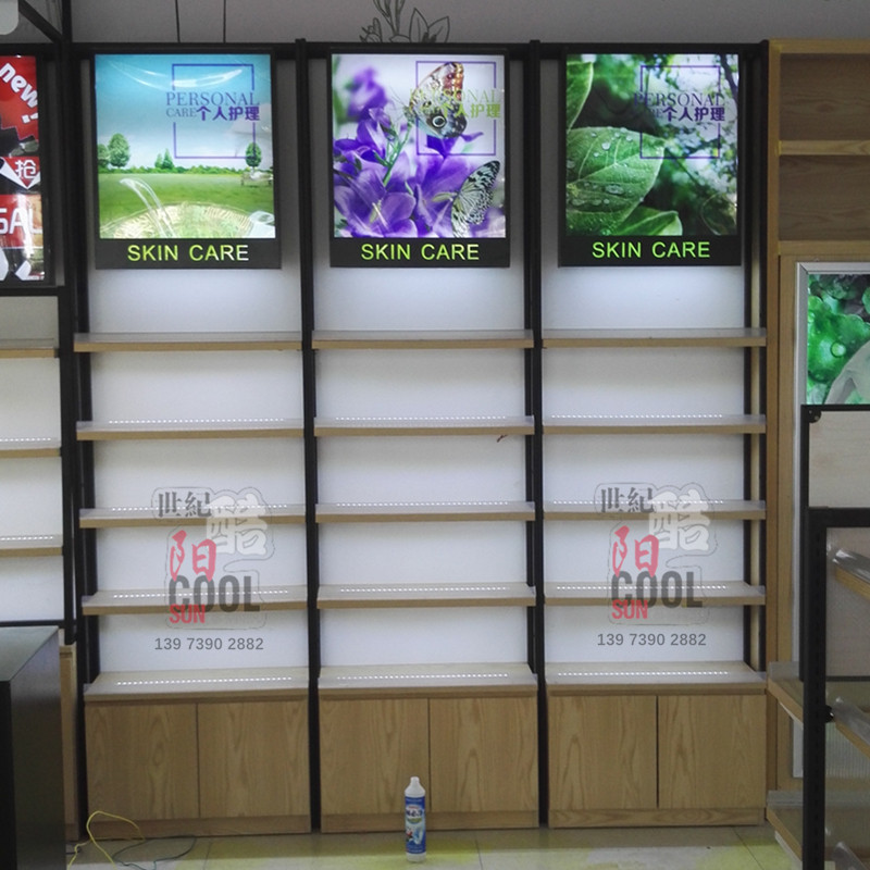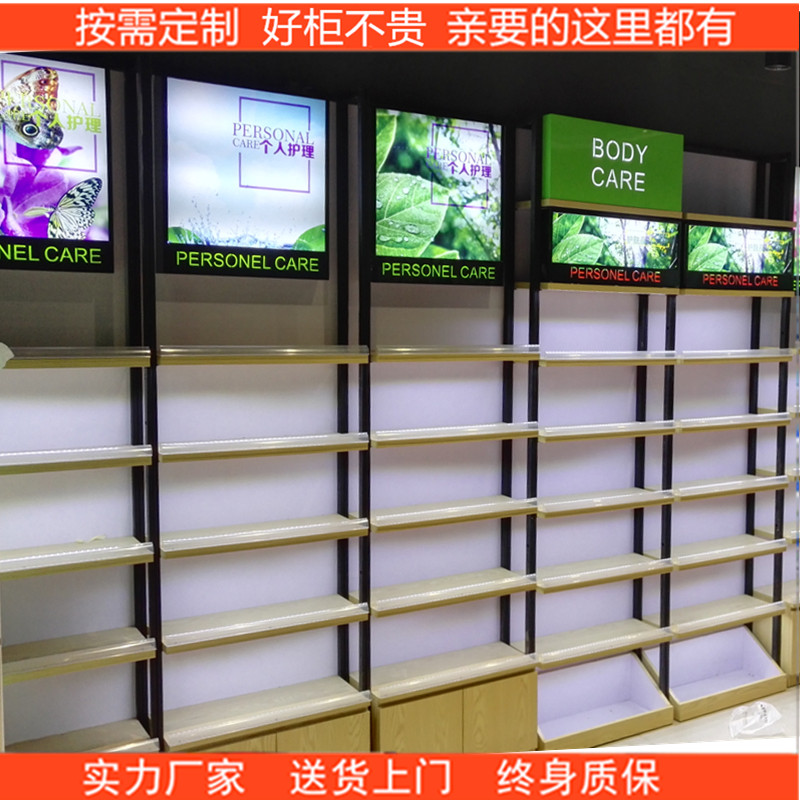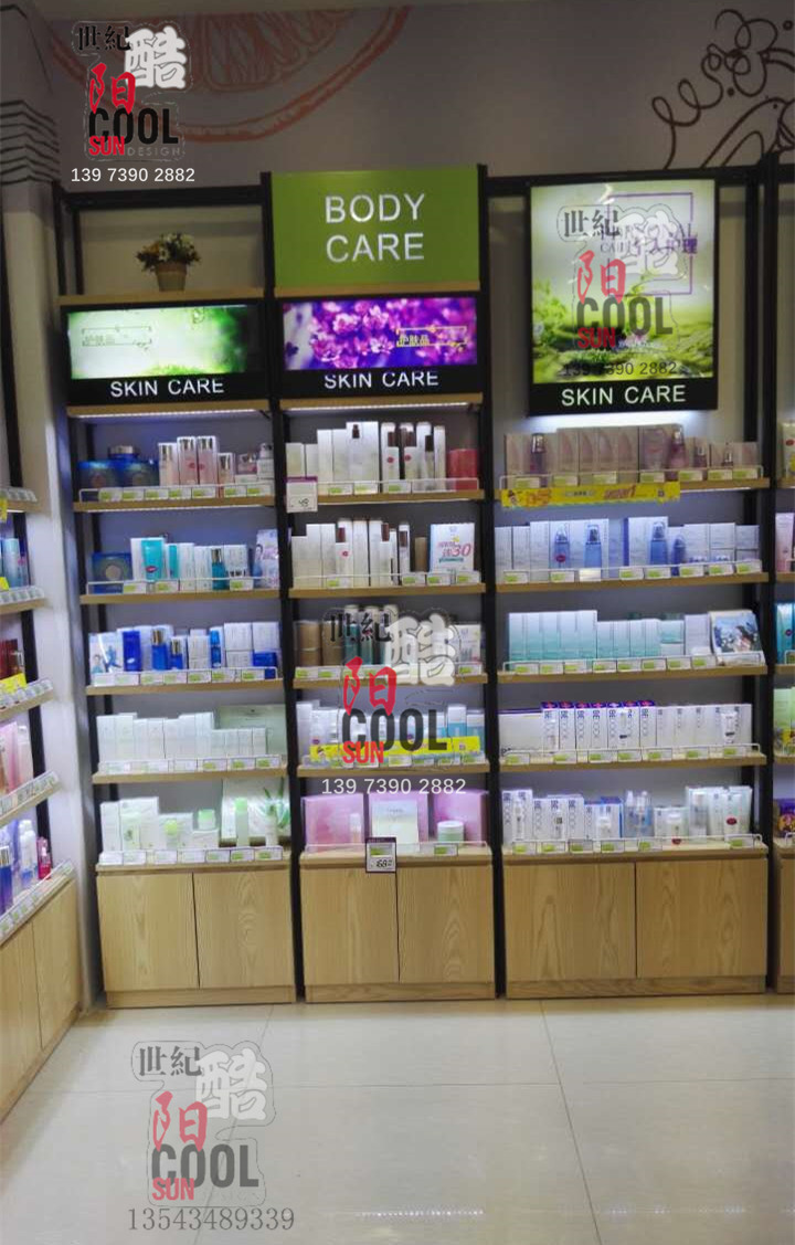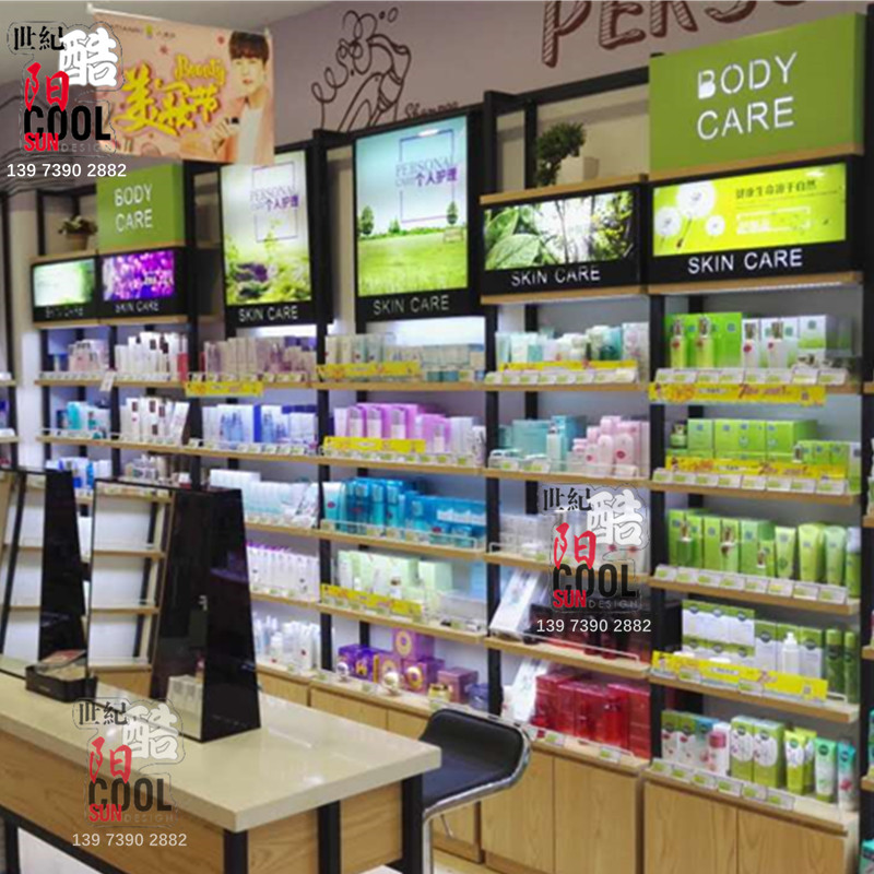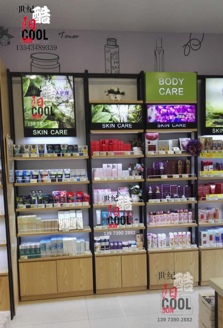 专业设计定制化妆品柜子展示柜 化妆品货架展示架 时尚护肤化妆品店展柜货柜木制组装
