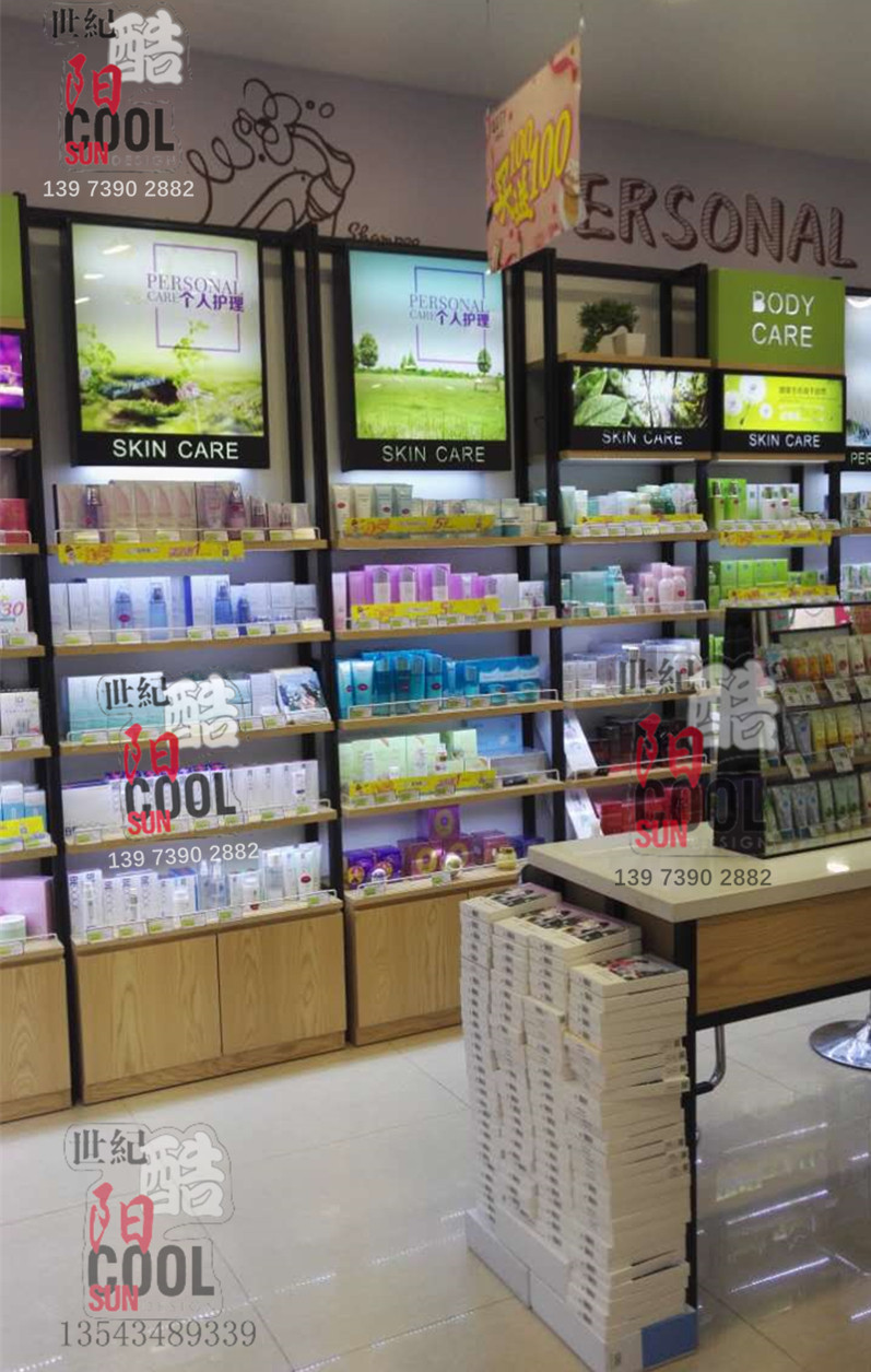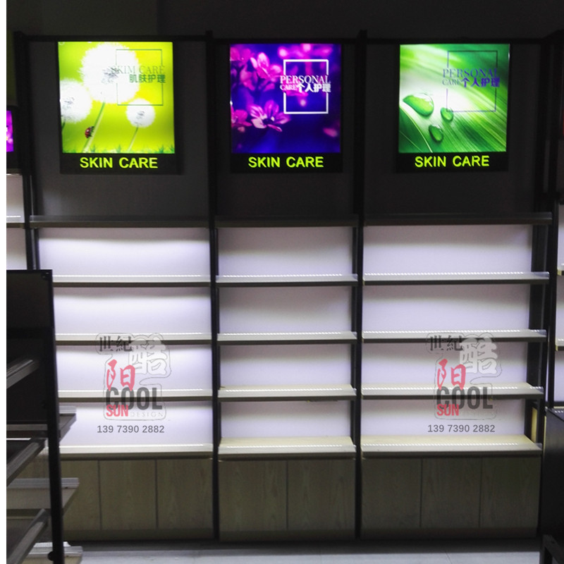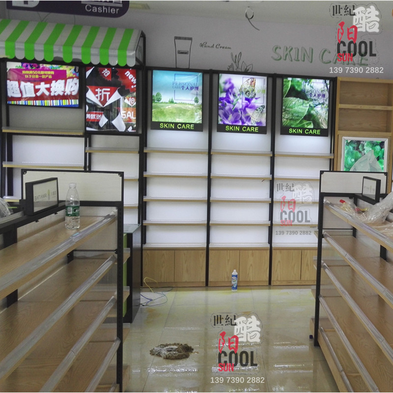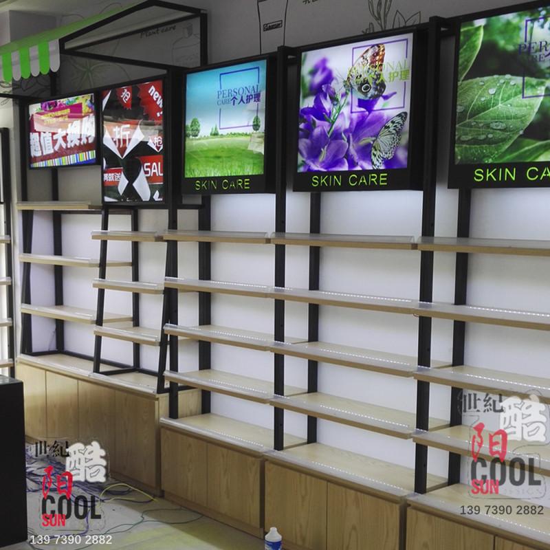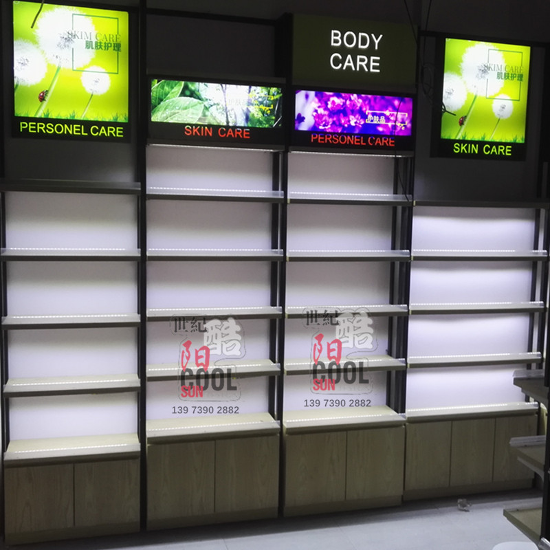 专业设计定制化妆品柜子展示柜 化妆品货架展示架 时尚护肤化妆品店展柜货柜木制组装