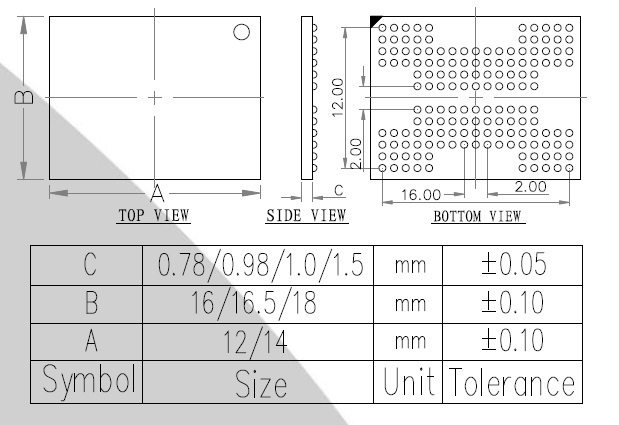适配芯片尺寸:12*18mm (BGA132) , 14*18mm (BGA152)