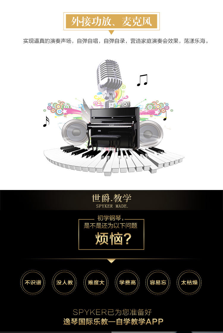 这是一款音质、手感、智能、外观可以兼得的电钢琴。