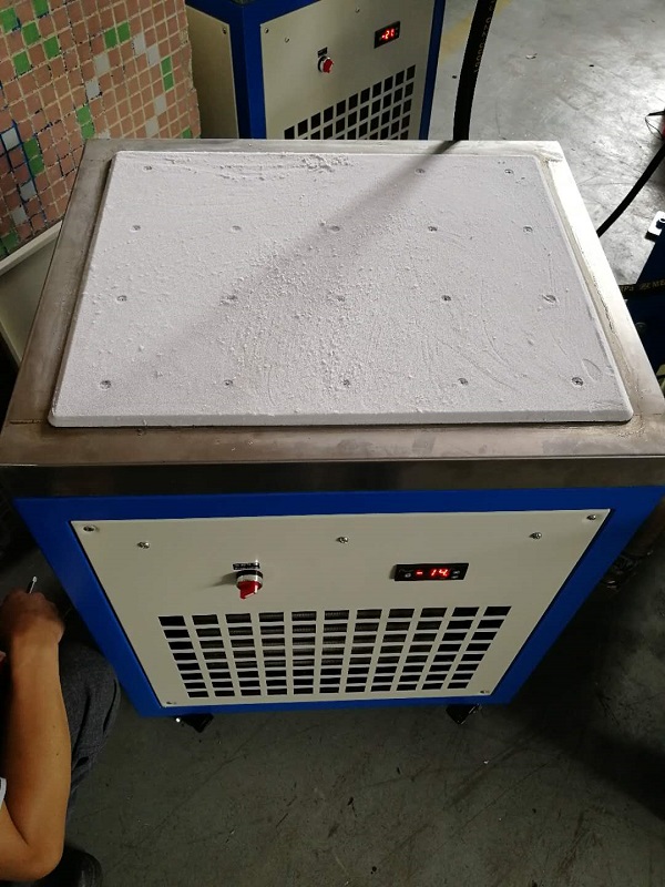 冷冻台主要用于压花模具的冷却处理,便于产品更好地脱模成型,广泛应用于硅胶压花生产行业,冷冻台是压花产品生产过程中不可或缺的重要设备之一。