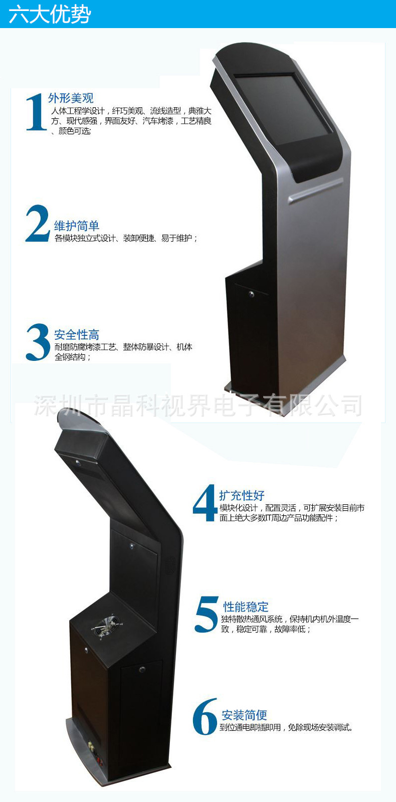 机柜 | 机柜采用大堂式落地机柜,高级金属漆,美观大方;柜体采用金属材质防水、防磁、防锈;配立体声音响。 可加装设备 选配 | 1 |