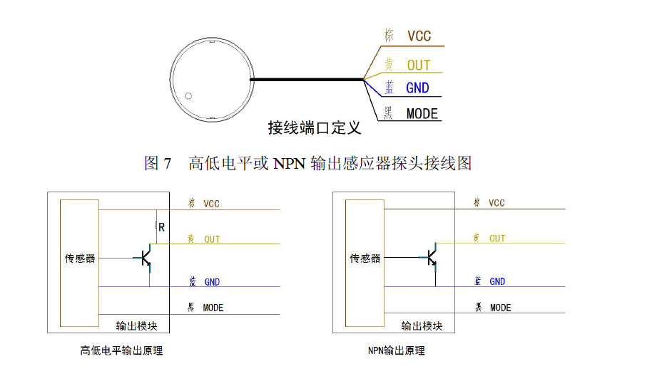智能型非接触式液位感应器分四种信号输出接口,分别为高低电平输出接口、NPN输出接口,PNP输出接口,RS485接口;分别对应四种型号:(请各位客户购买时备注好你要的型号!谢谢!)